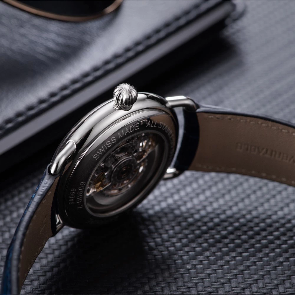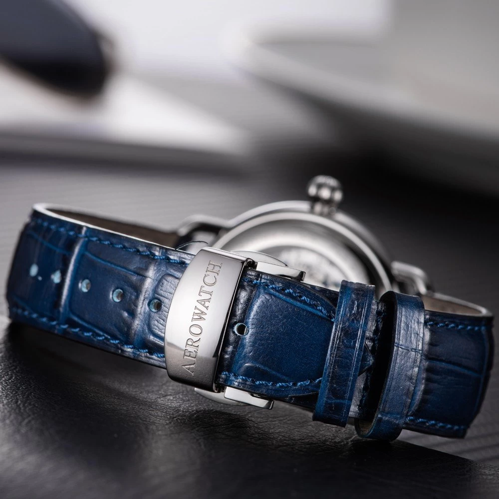 This Aerowatch watch has a case made of stainless steel with a diameter of 40 mm and is fitted with a leather band. Inside the case lies a Sellita movement and the watch features a Sapphire crystal.