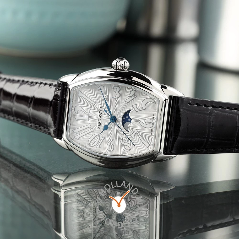 This Aerowatch watch has a case made of stainless steel with a diameter of 35 mm and is fitted with a leather band. Inside the case lies a Ronda movement and the watch features a Sapphire crystal.