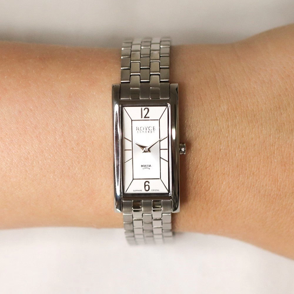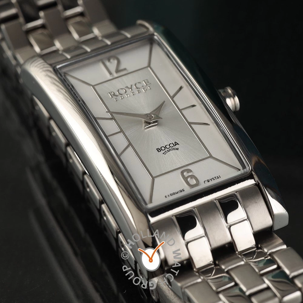 This Boccia watch has a case made of titanium with a diameter of 19 mm and is fitted with a titanium band. Inside the case lies a Miyota movement and the watch features a Sapphire crystal.