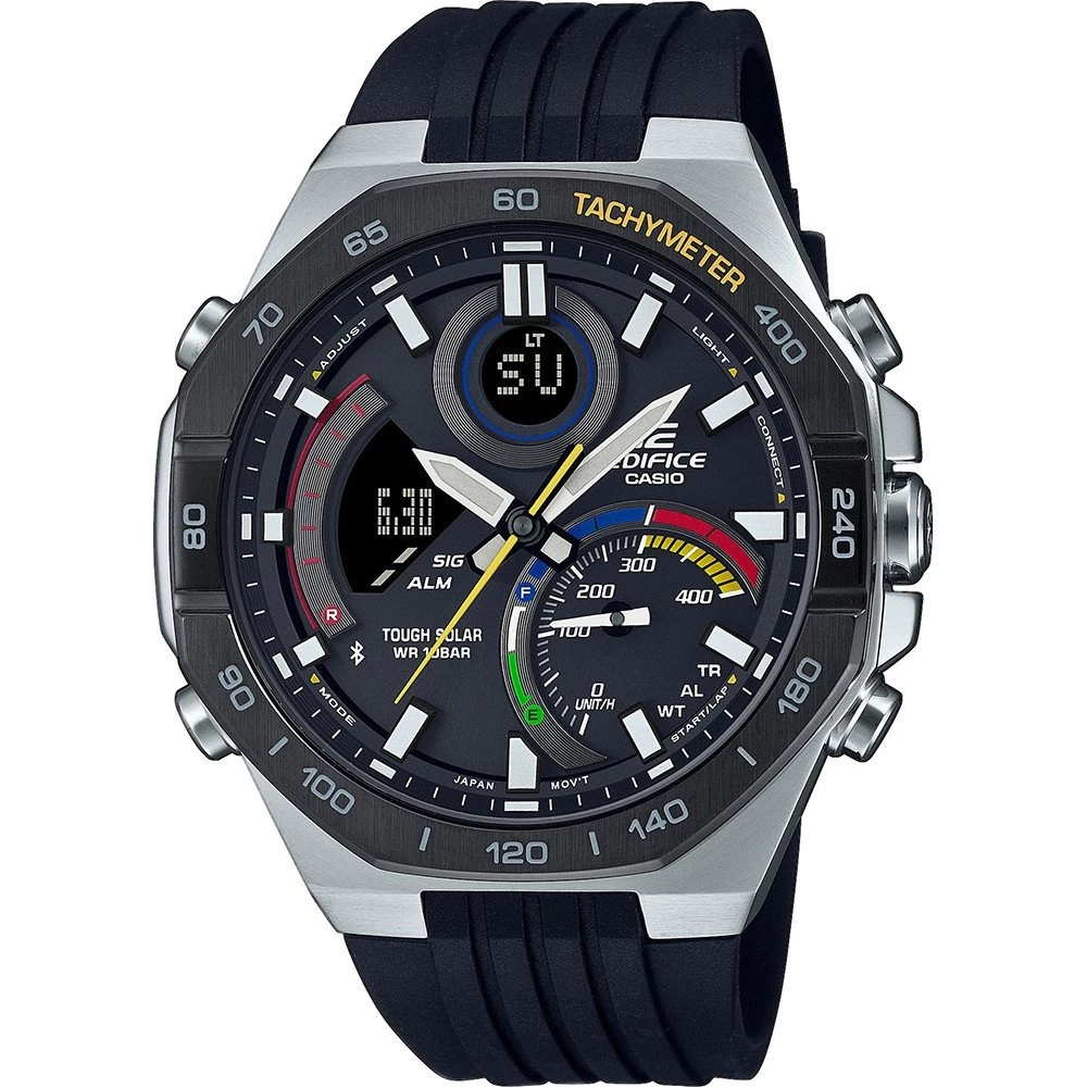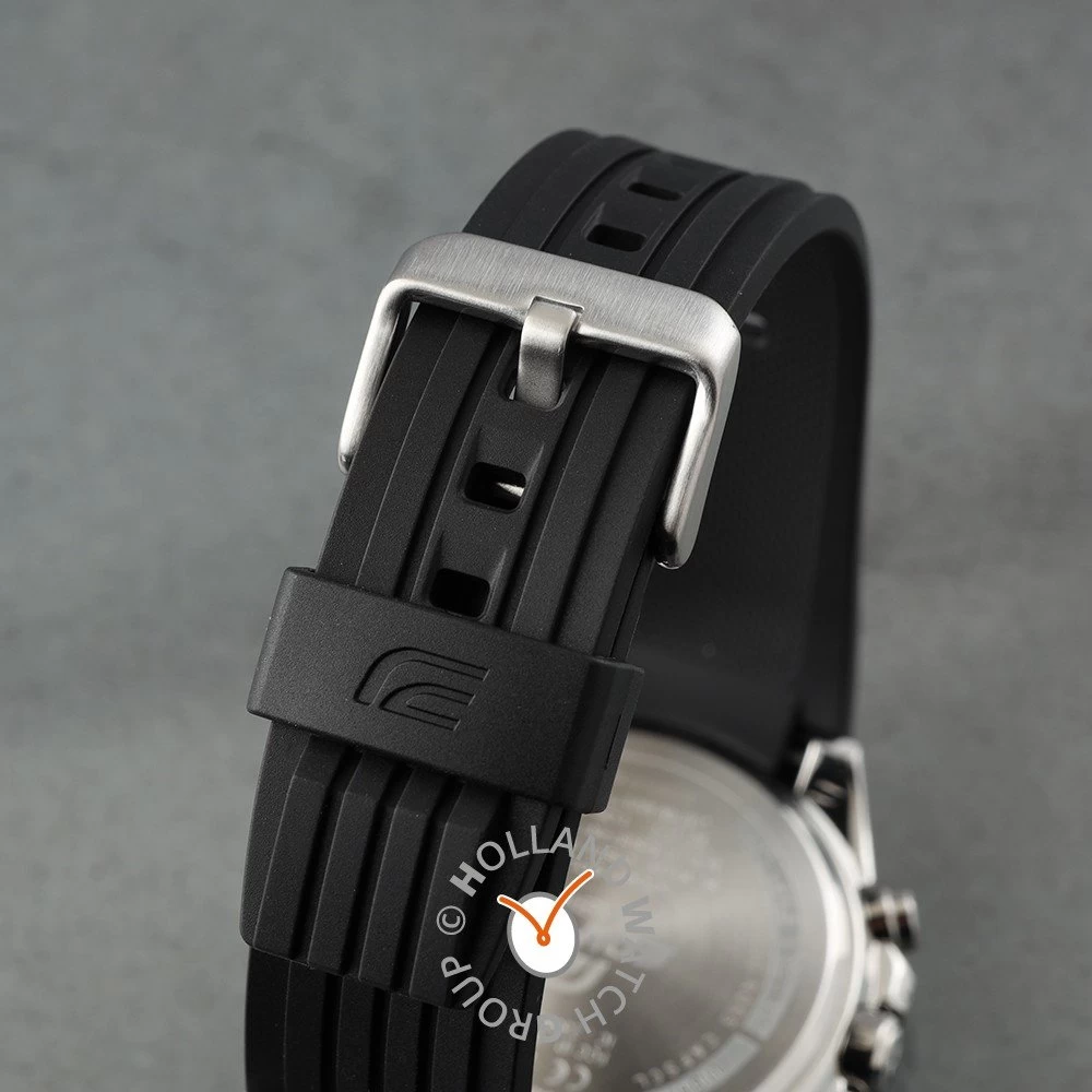 This Casio Edifice watch has a case made of stainless steel with a diameter of 48 mm and is fitted with a plastic / resin band. Inside the case lies a Casio movement and the watch features a Mineral crystal.