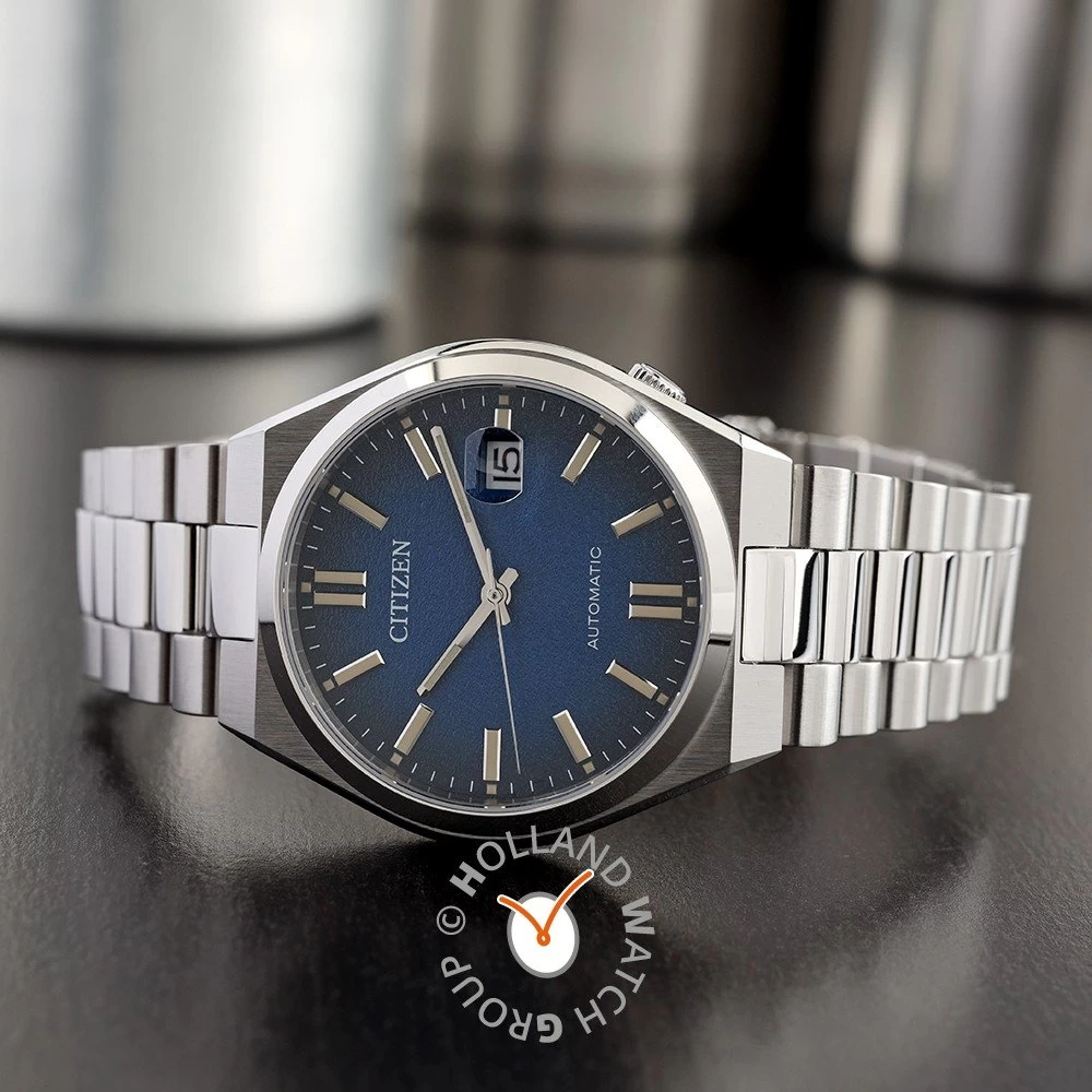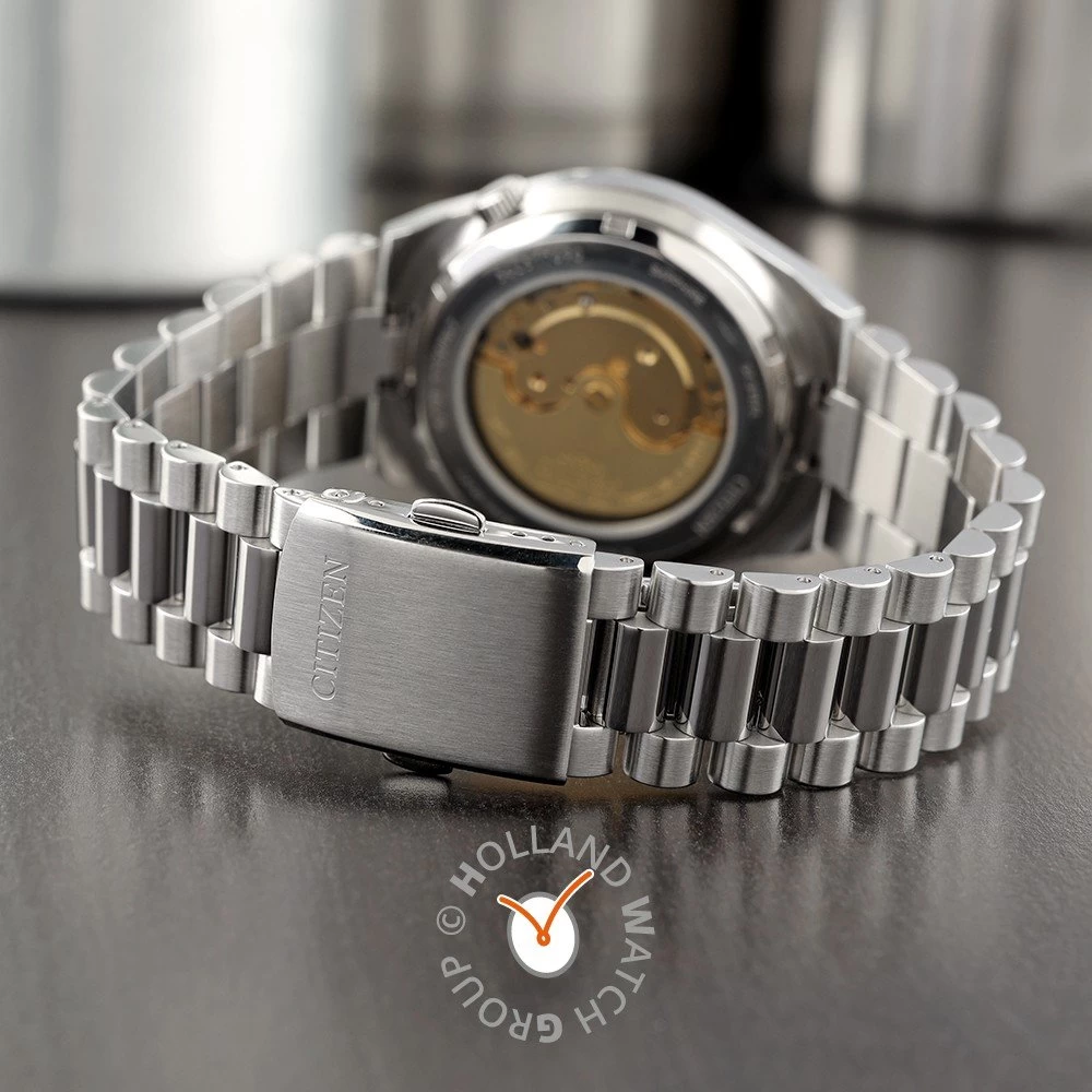 This Citizen watch has a case made of stainless steel with a diameter of 40 mm and is fitted with a metal band. Inside the case lies a Citizen movement and the watch features a Sapphire crystal.