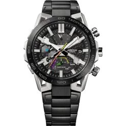 This Citizen watch has a stainless steel case 44.5 mm in diameter and is fitted with a metal strap. Inside the case lies a Citizen movement and the watch features a Mineral crystal.