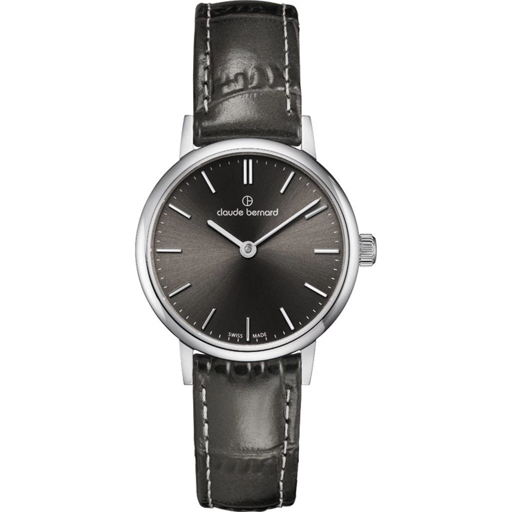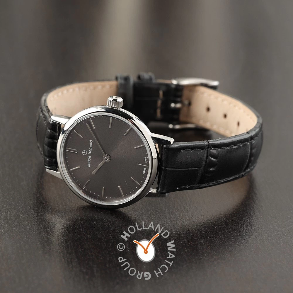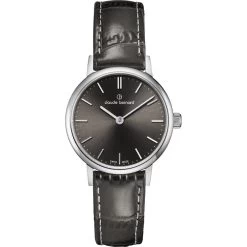This Claude Bernard watch has a case made of stainless steel with a diameter of 27 mm and is fitted with a leather band. Inside the case lies a Ronda movement and the watch features a Sapphire crystal.