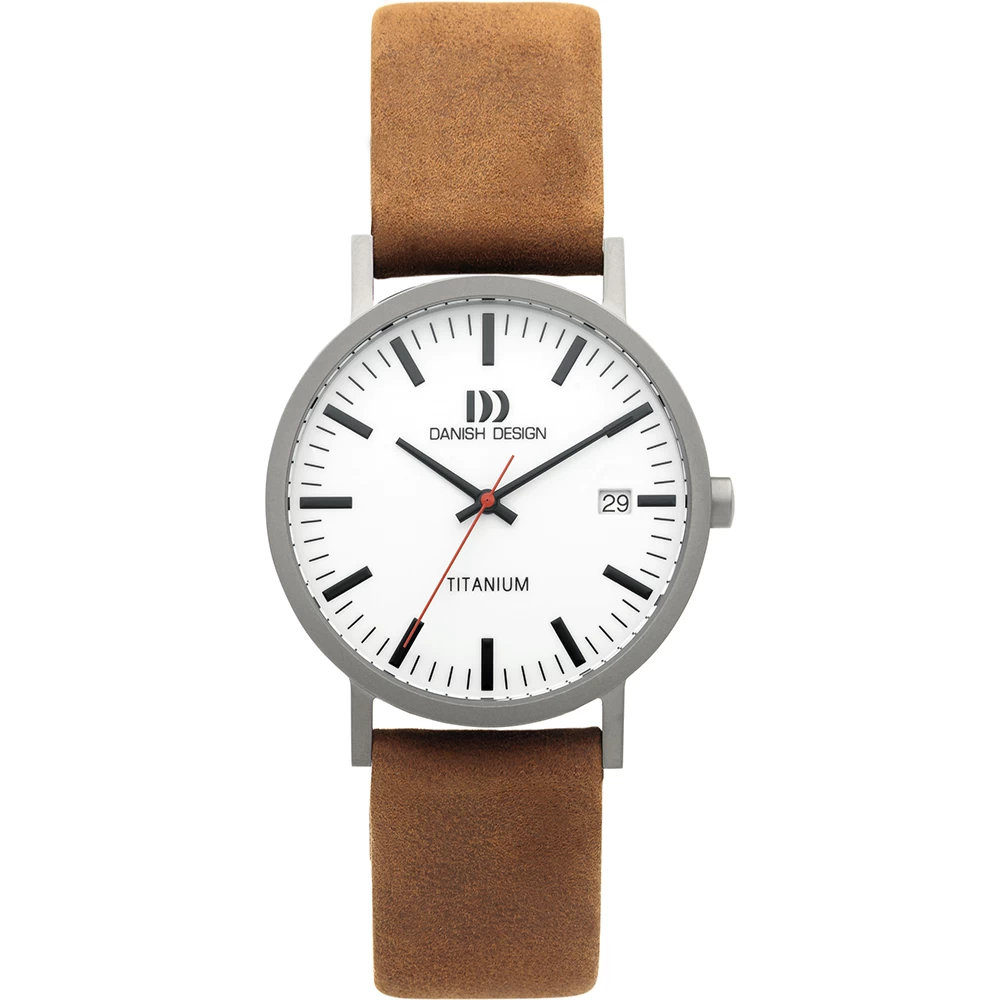This Danish Design watch has a case made of titanium with a diameter of 35 mm and is fitted with a leather band. Inside the case lies a Seiko Instruments Inc. movement and the watch features a Mineral crystal.