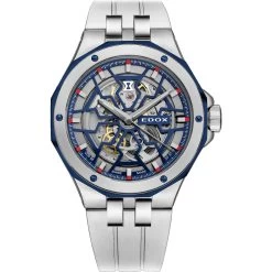 This Edox Delphin watch is a modern version of the classic Delphin from the 1970s. The transparent case gives the watch a robust yet luxurious look. The crown is screwed on and therefore guarantees a high degree of water resistance. The indexes and hands are covered with a a Super-LumiNova coating which makes the watch legible even in poorly lit places. An eye-catching detail is the 12-angle bezel, a nod to the original model from the 1970s. As such, Edox is known for their innovative modern designs that always incorporate classic elements from its long, own long history.