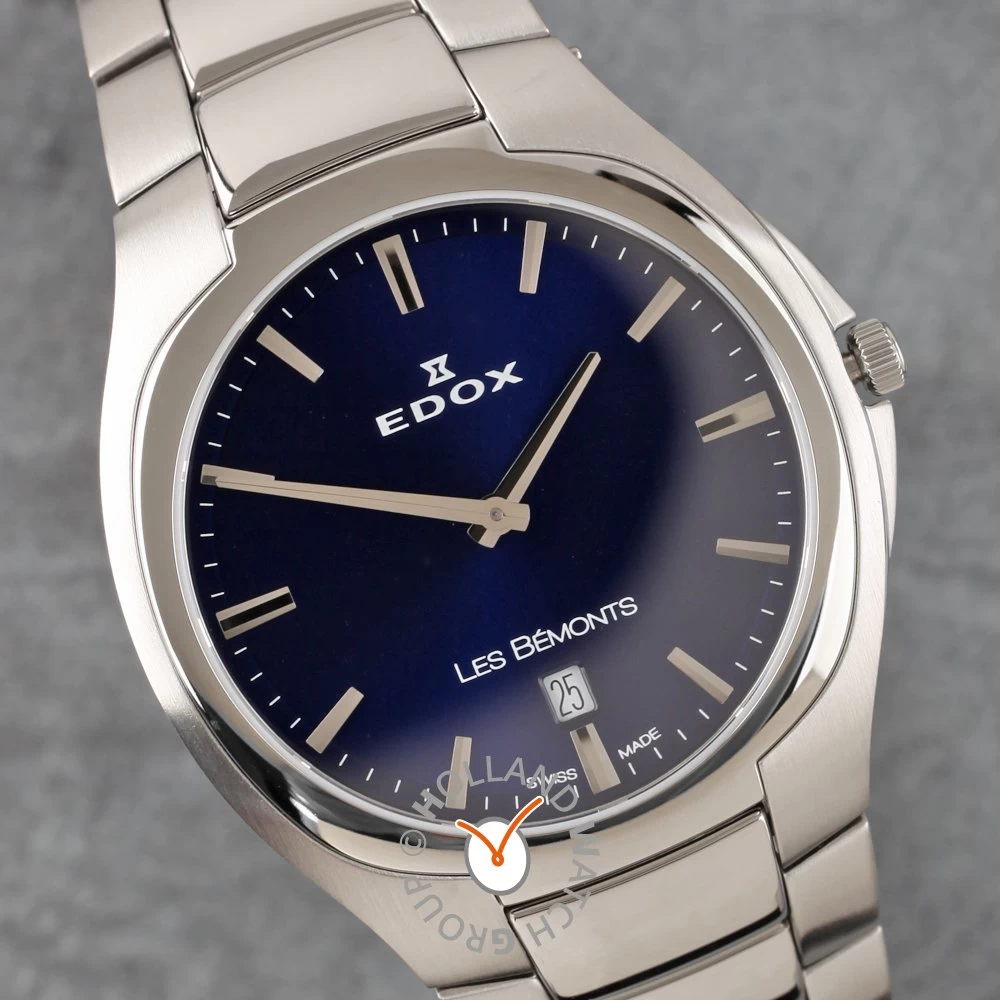 This Edox watch has a case made of stainless steel with a diameter of 40 mm and is fitted with a metal band. Inside the case lies a Ronda movement and the watch features a Sapphire crystal.
