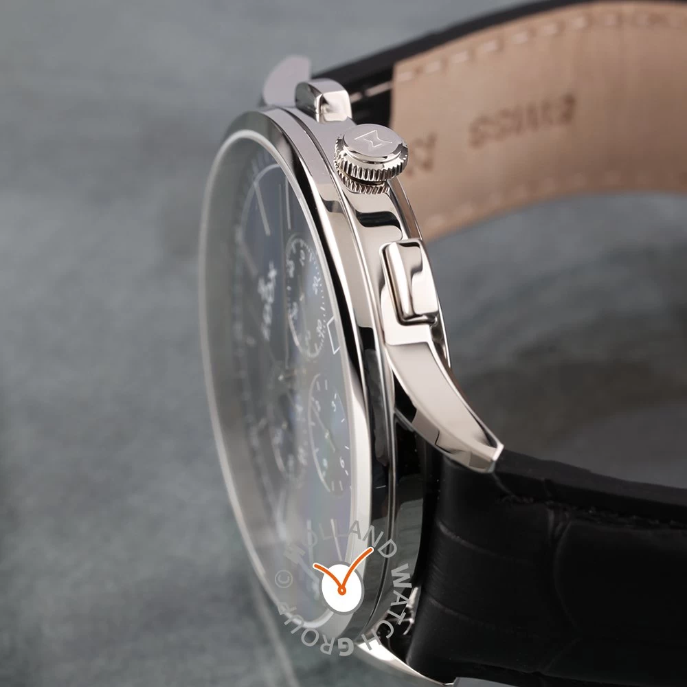 This Edox watch has a case made of stainless steel with a diameter of 42 mm and is fitted with a leather band. Inside the case lies a Ronda movement and the watch features a Sapphire crystal.