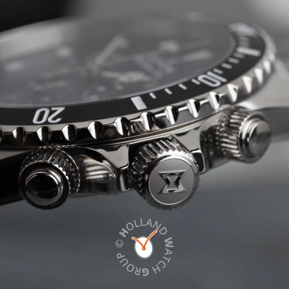 This Edox watch has a stainless steel case 44 mm in diameter and is fitted with a metal strap. Inside the case lies a Ronda movement and the watch features a Sapphire crystal.