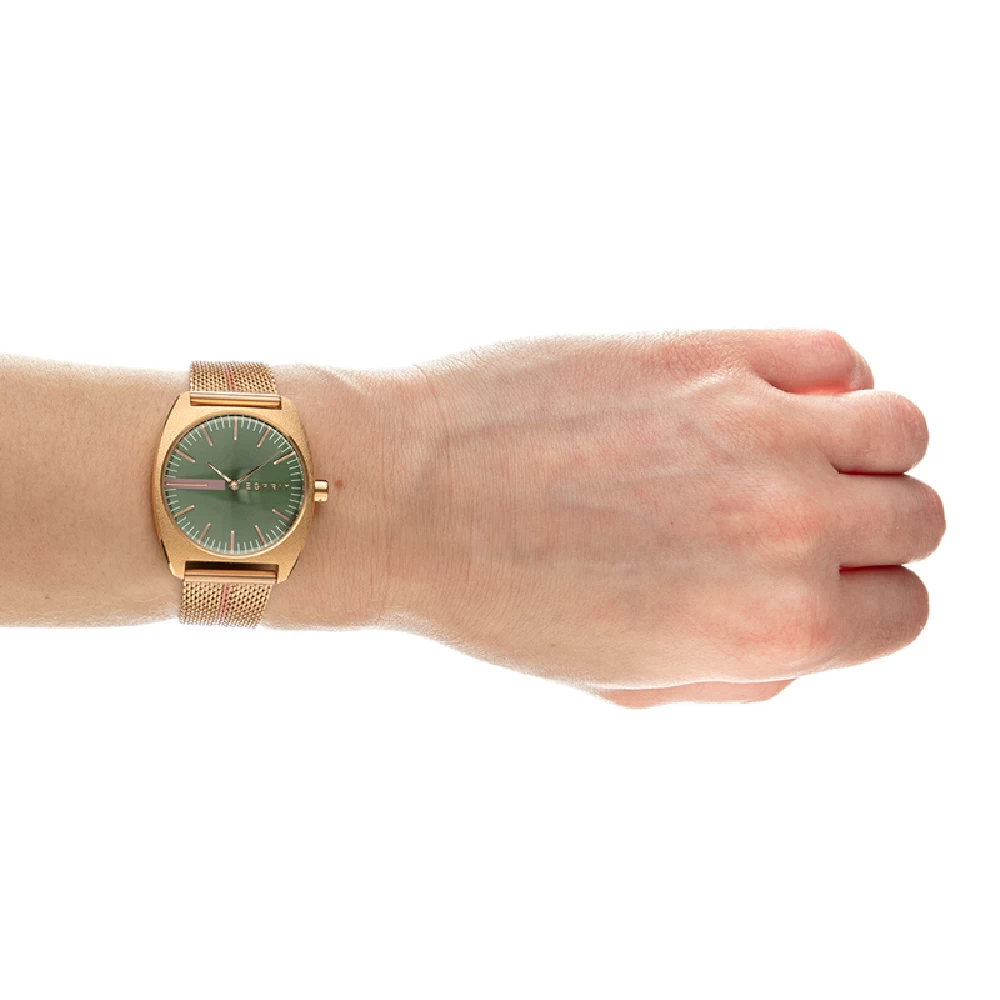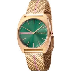 This Esprit watch has a case made of stainless steel with a diameter of 32 mm and is fitted with a metal band. Inside the case lies a Seiko Instruments Inc. movement and the watch features a Mineral crystal.