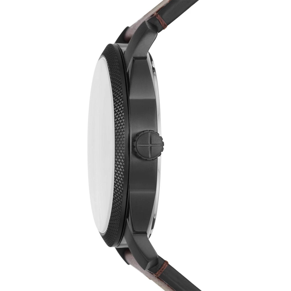 This Fossil watch has a case made of stainless steel with a diameter of 42 mm and is fitted with a leather band. Inside the case lies a Seiko Instruments Inc. movement and the watch features a Mineral crystal.