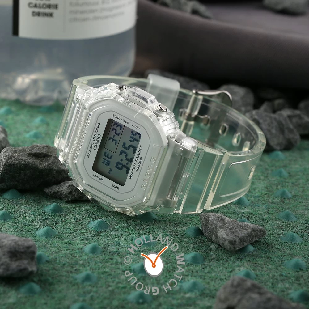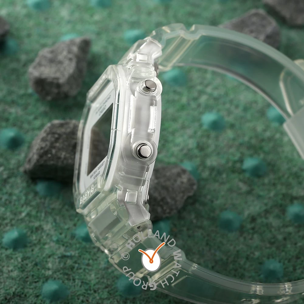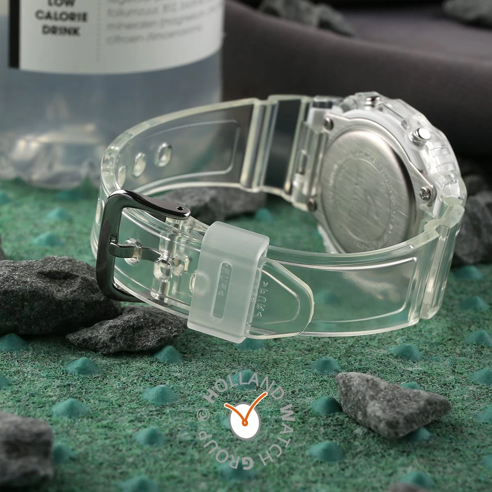 This G-Shock watch has a plastic case 37.9 mm in diameter and is fitted with a plastic / resin strap. Inside the case lies a Casio movement and the watch features a Mineral crystal.