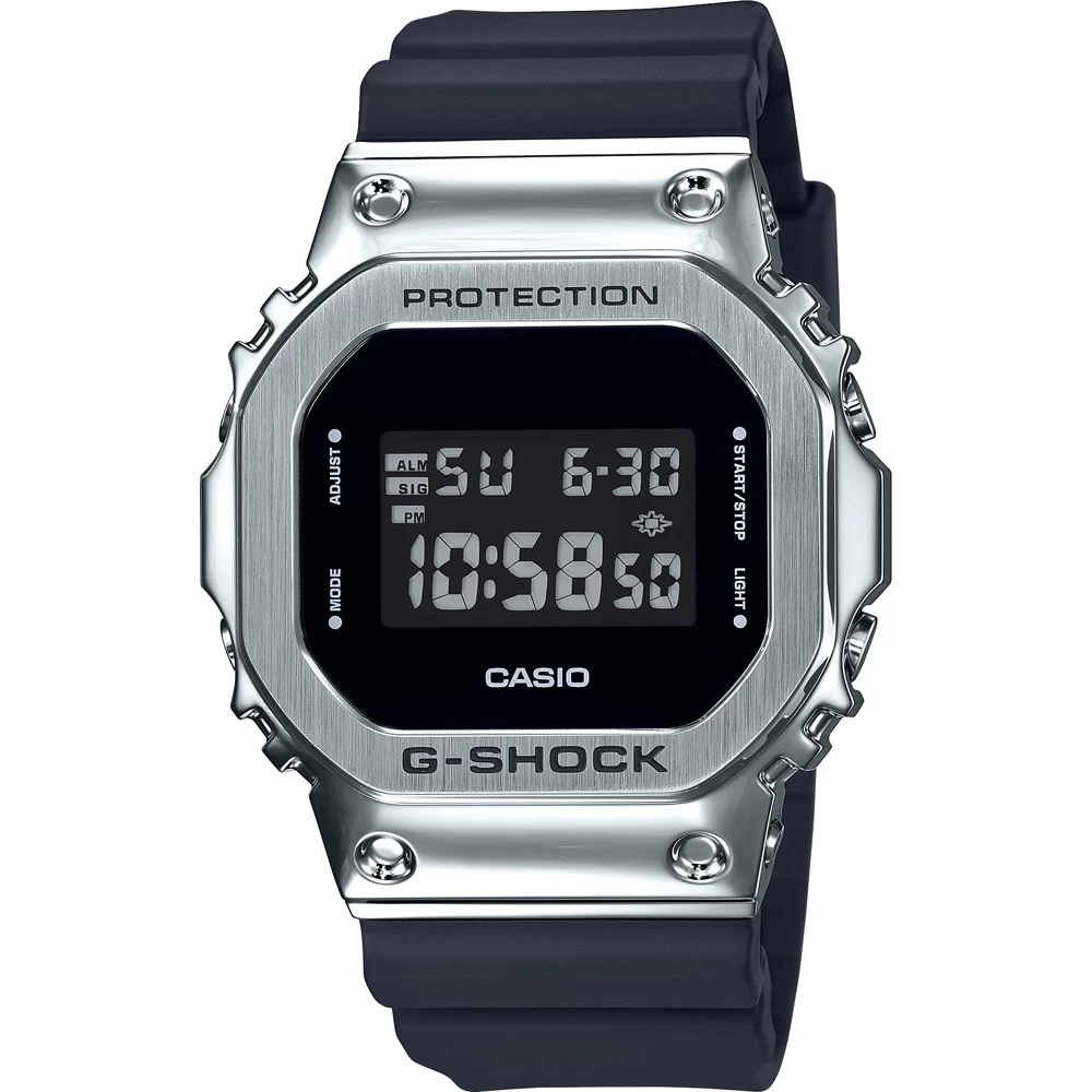 This G-Shock watch has a stainless steel case 42.8 mm in diameter and is fitted with a plastic / resin strap. Inside the case lies a Casio movement and the watch features a Mineral crystal.