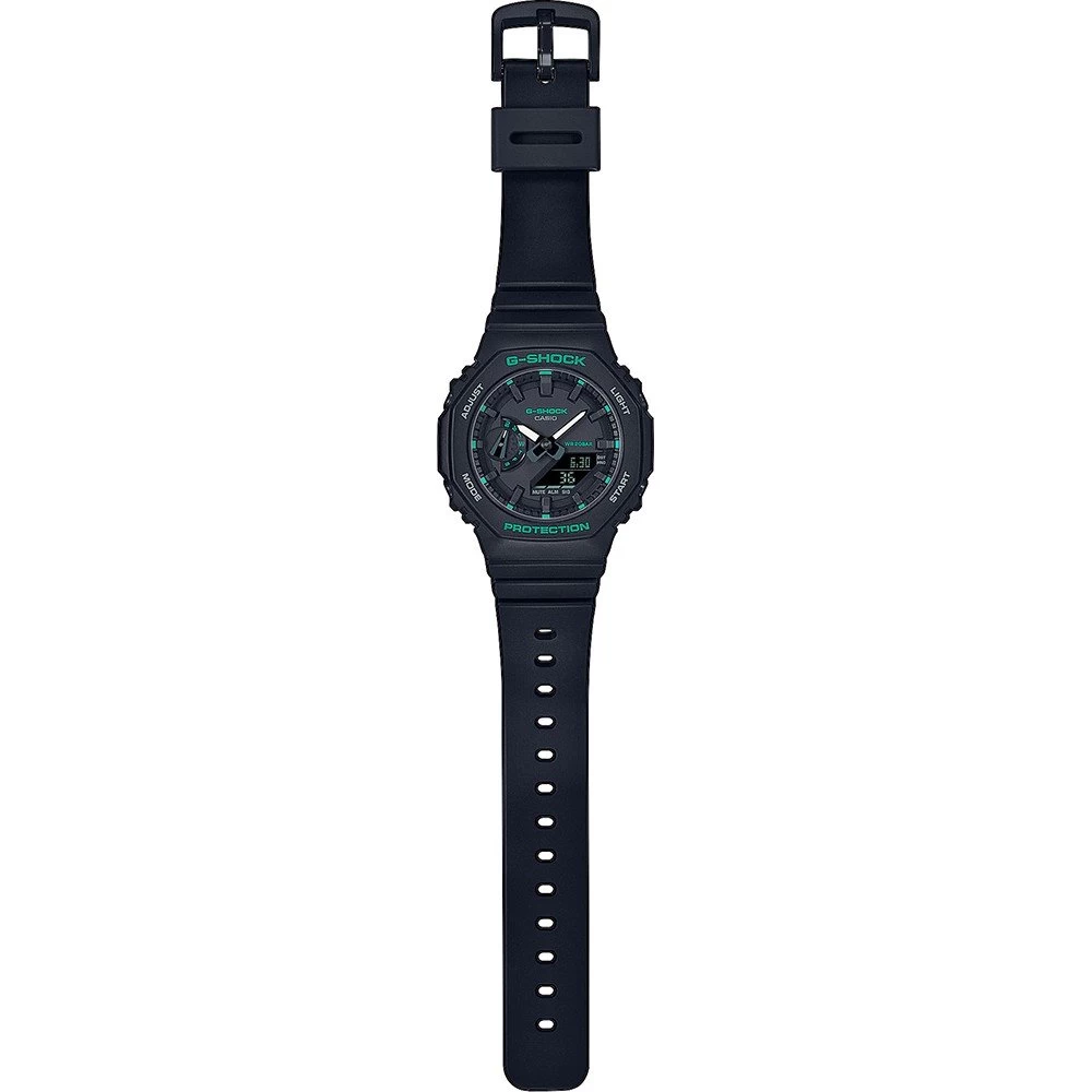 This G-Shock watch has a Carbon reinforced resin case 42.9 mm in diameter and is fitted with a plastic / resin strap. Inside the case lies a Casio movement and the watch features a Mineral crystal.