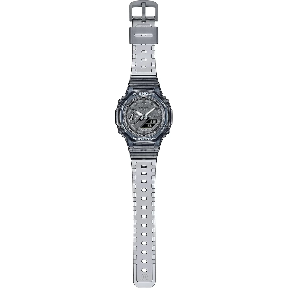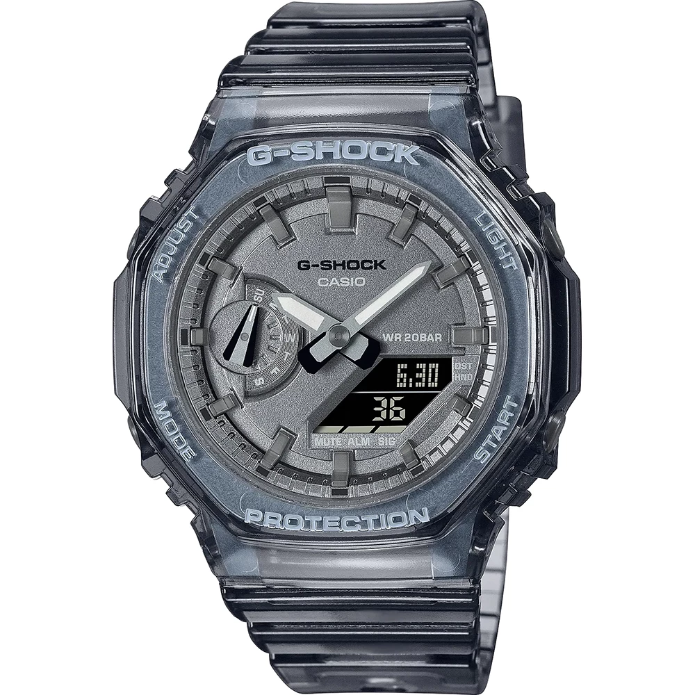 This G-Shock watch has a Fibre-reinforced Resin case 42.9 mm in diameter and is fitted with a plastic / resin strap. Inside the case lies a Casio movement and the watch features a Mineral crystal.