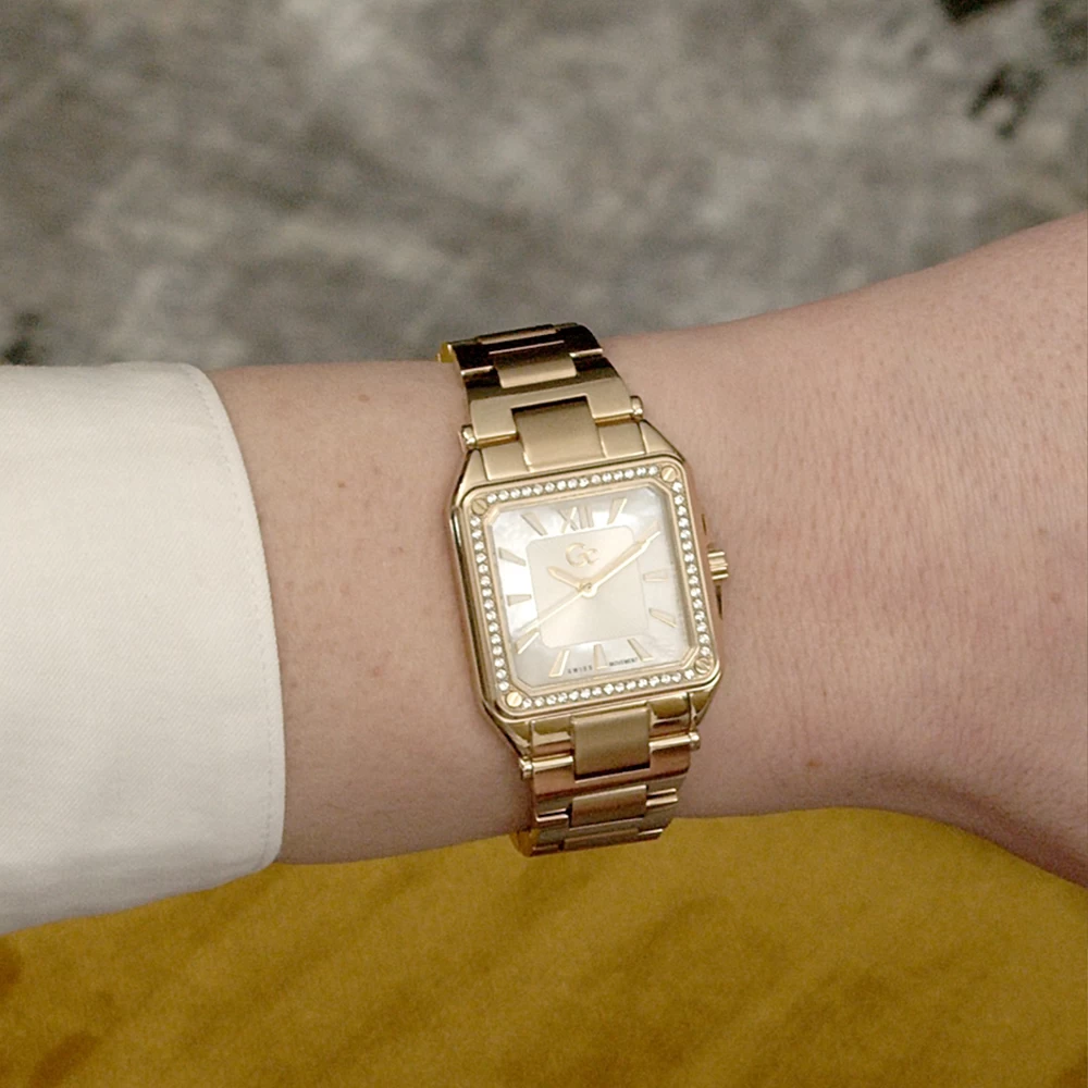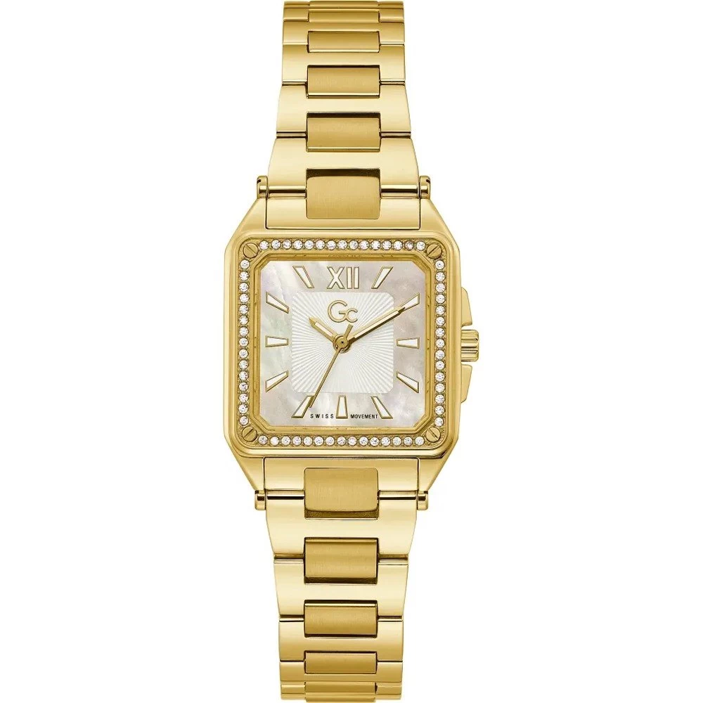 This GC watch has a case made of stainless steel with a diameter of 26.7 mm and is fitted with a metal band.