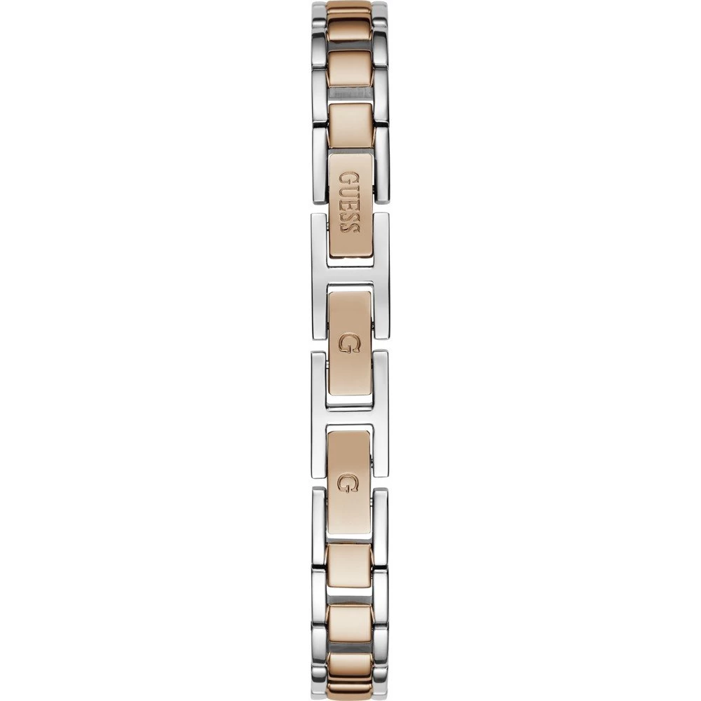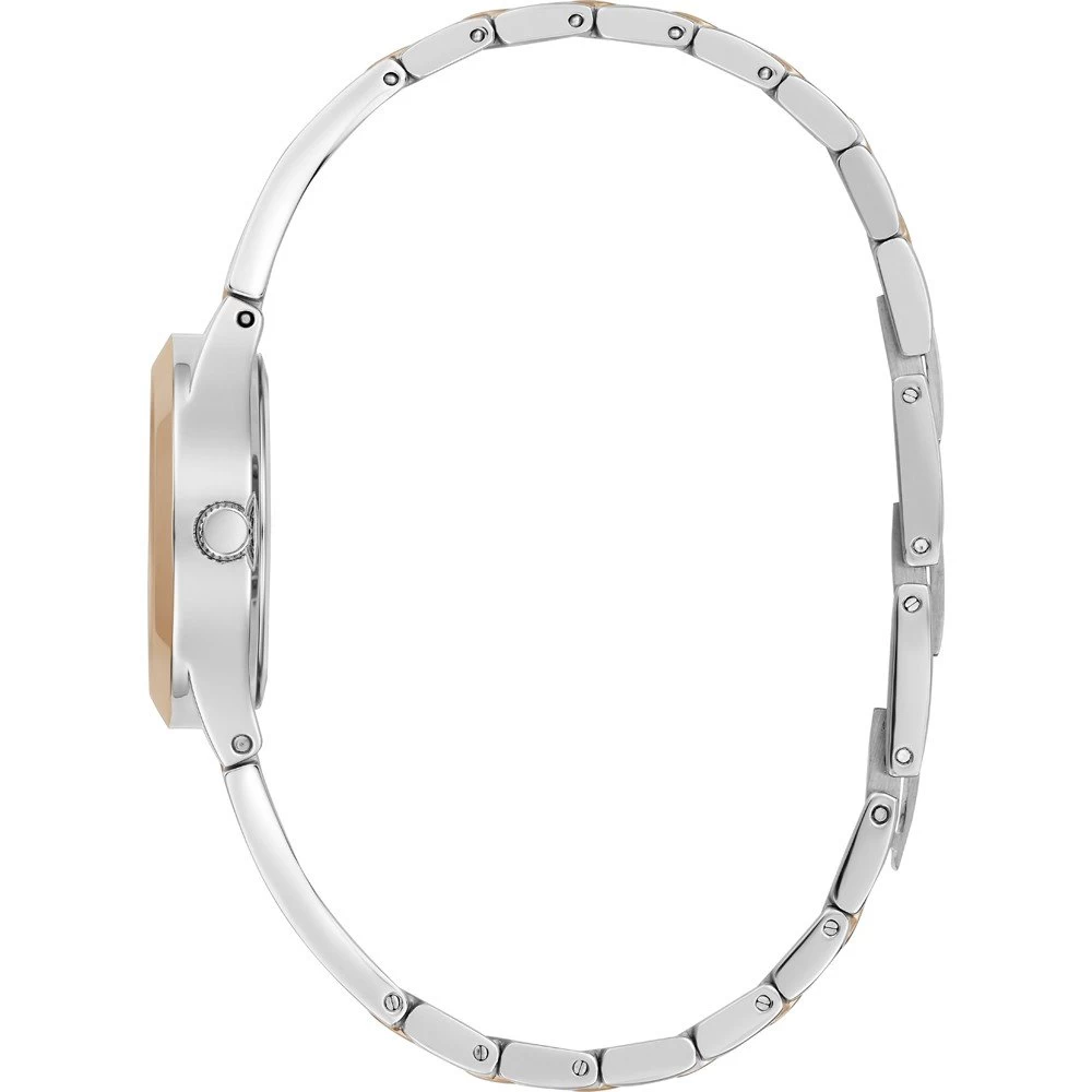 This Guess watch has a case made of stainless steel with a diameter of 26 mm and is fitted with a metal band. Inside the case lies a Seiko movement and the watch features a Mineral crystal.