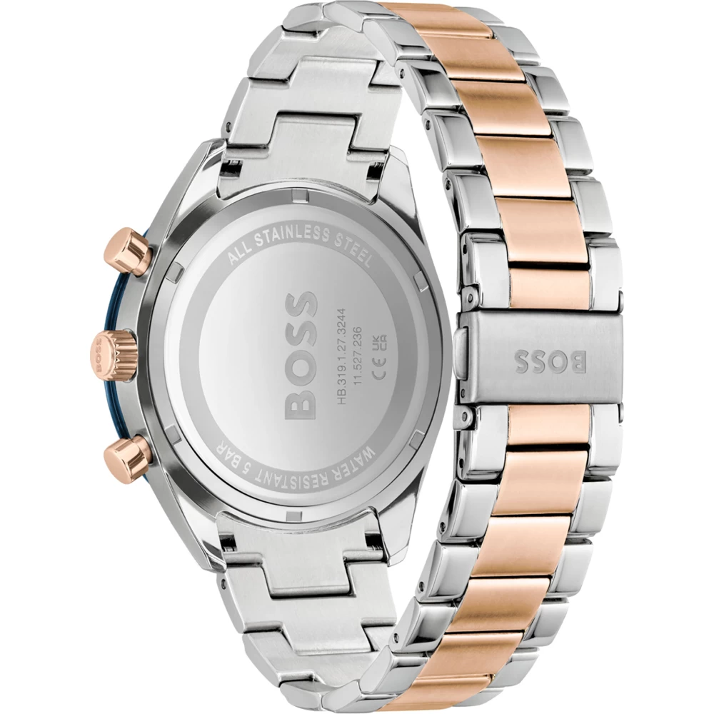 This Hugo Boss watch has a case made of stainless steel with a diameter of 44 mm and is fitted with a metal band. Inside the case lies a Seiko Instruments Inc. movement and the watch features a Mineral crystal.