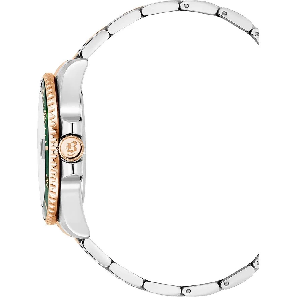 This Jacques du Manoir watch has a case made of stainless steel with a diameter of 43 mm and is fitted with a metal band. Inside the case lies a Ronda movement and the watch features a Mineral crystal.
