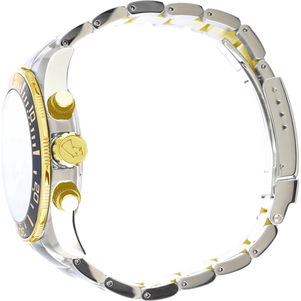 This Jaguar watch has a stainless steel case 43 mm in diameter and is fitted with a metal strap. Inside the case lies a Ronda movement and the watch features a Sapphire crystal.