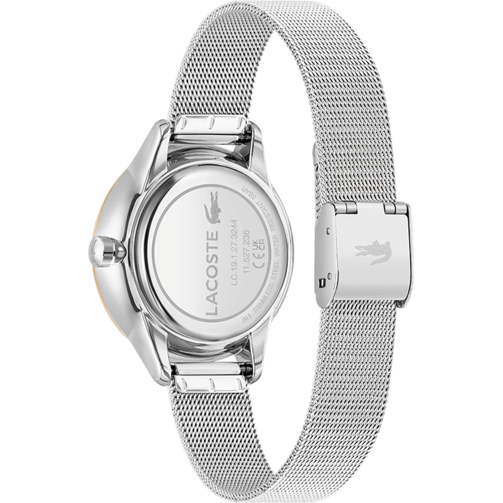 This Lacoste watch has a case made of stainless steel with a diameter of 36 mm and is fitted with a metal band. Inside the case lies a Seiko Instruments Inc. movement and the watch features a Mineral crystal.