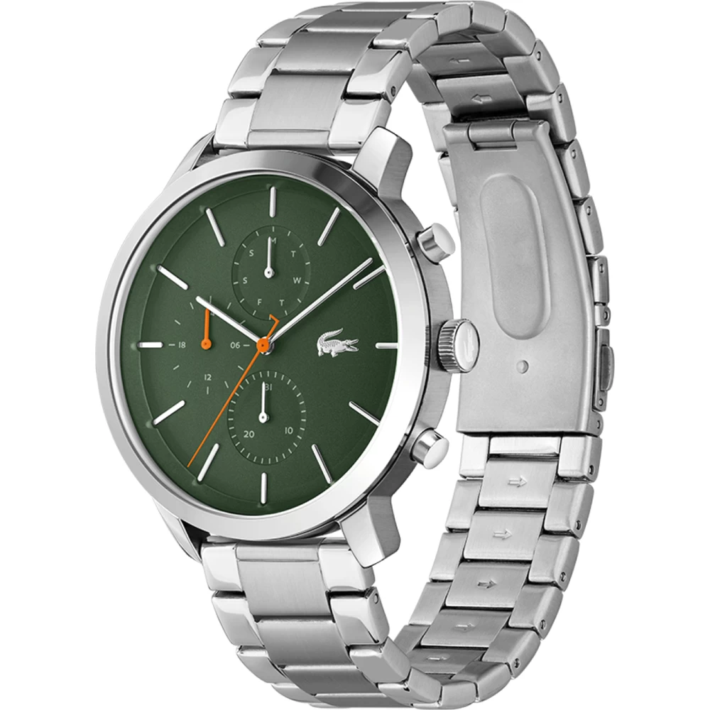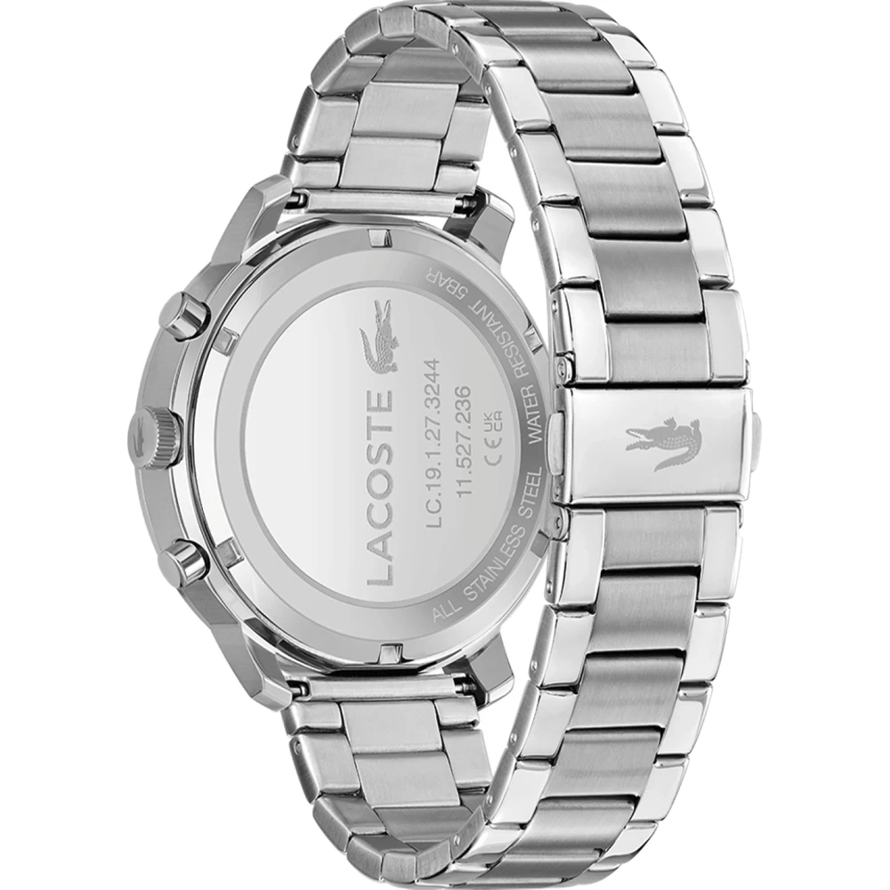 This Lacoste watch has a case made of stainless steel with a diameter of 44 mm and is fitted with a metal band. Inside the case lies a Seiko Instruments Inc. movement and the watch features a Mineral crystal.