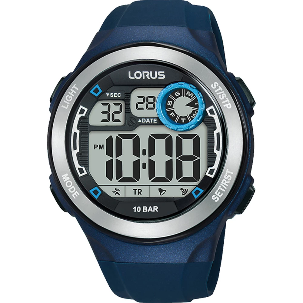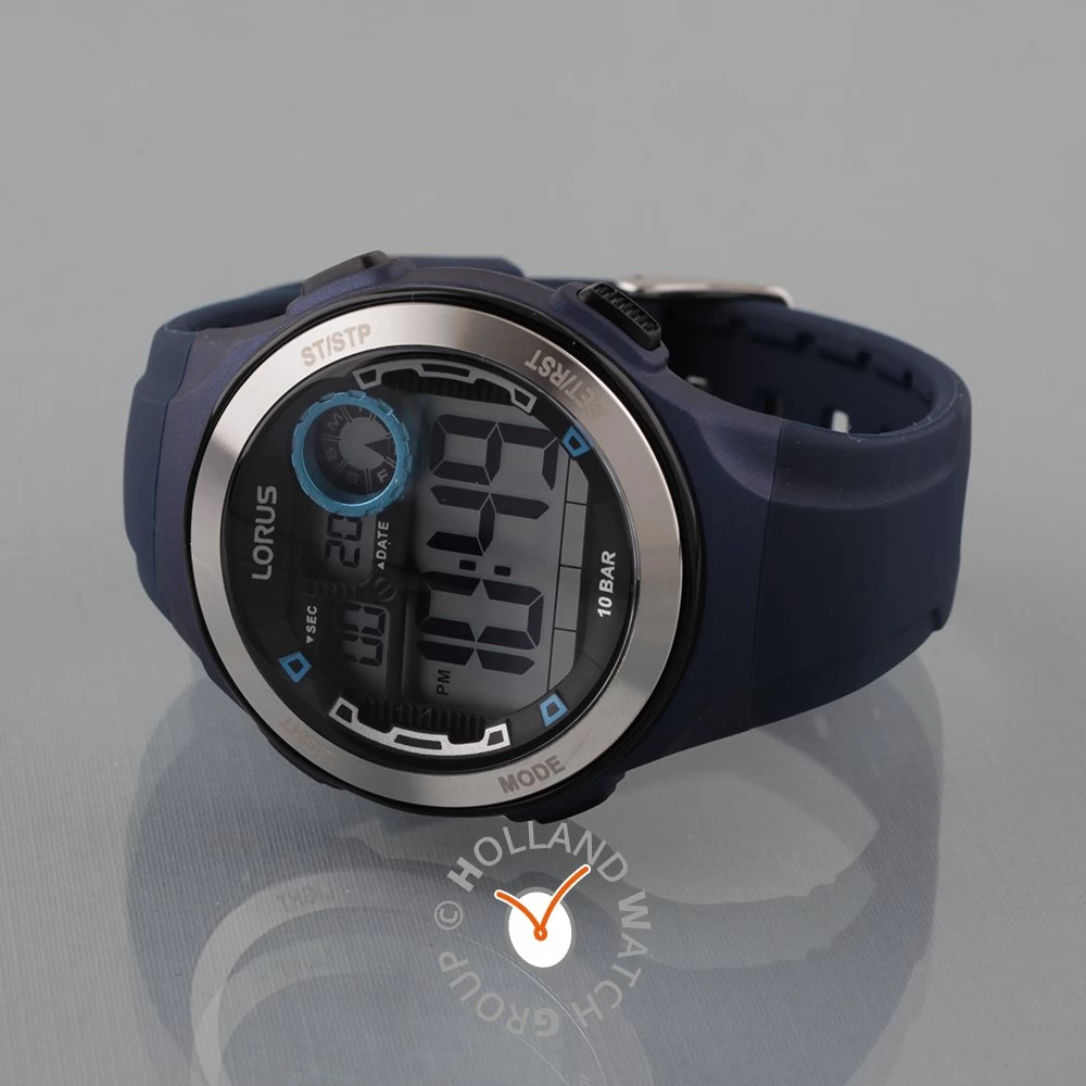 This Lorus watch has a case made of plastic with a diameter of 45 mm and is fitted with a rubber band. Inside the case lies a Seiko Instruments Inc. movement and the watch features a Plexi crystal.
