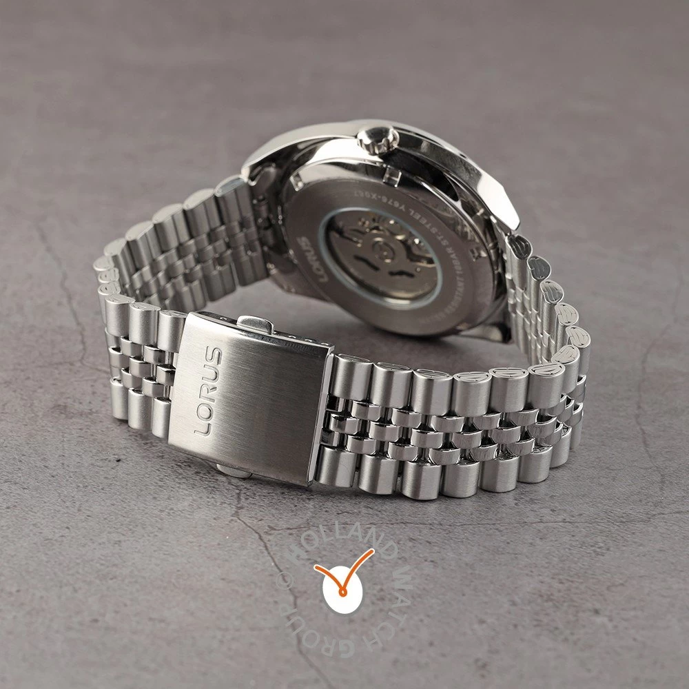 This Lorus watch has a case made of stainless steel with a diameter of 43 mm and is fitted with a metal band. Inside the case lies a Seiko Instruments Inc. movement and the watch features a Hardlex crystal crystal.