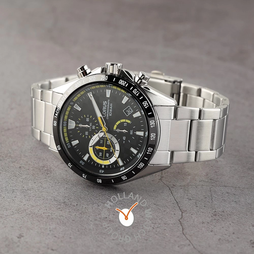 This Lorus watch has a case made of stainless steel with a diameter of 43.5 mm and is fitted with a metal band. Inside the case lies a Seiko Instruments Inc. movement and the watch features a Hardlex crystal crystal.