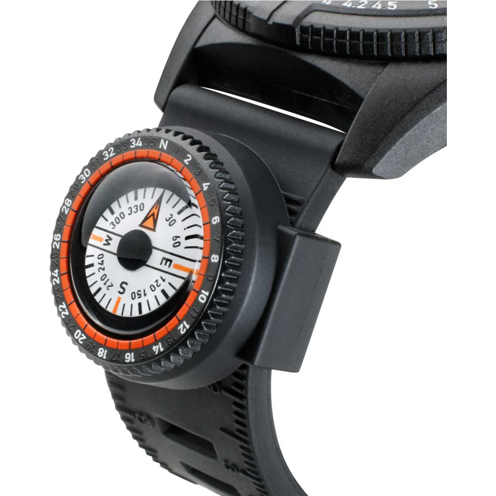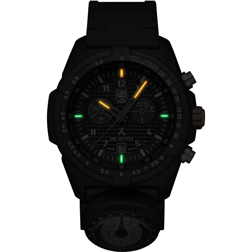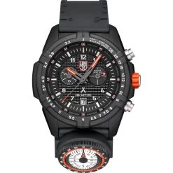 This Luminox watch has a carbon case 45 mm in diameter and is fitted with a rubber strap. Inside the case lies a Ronda movement and the watch features a Mineral crystal.