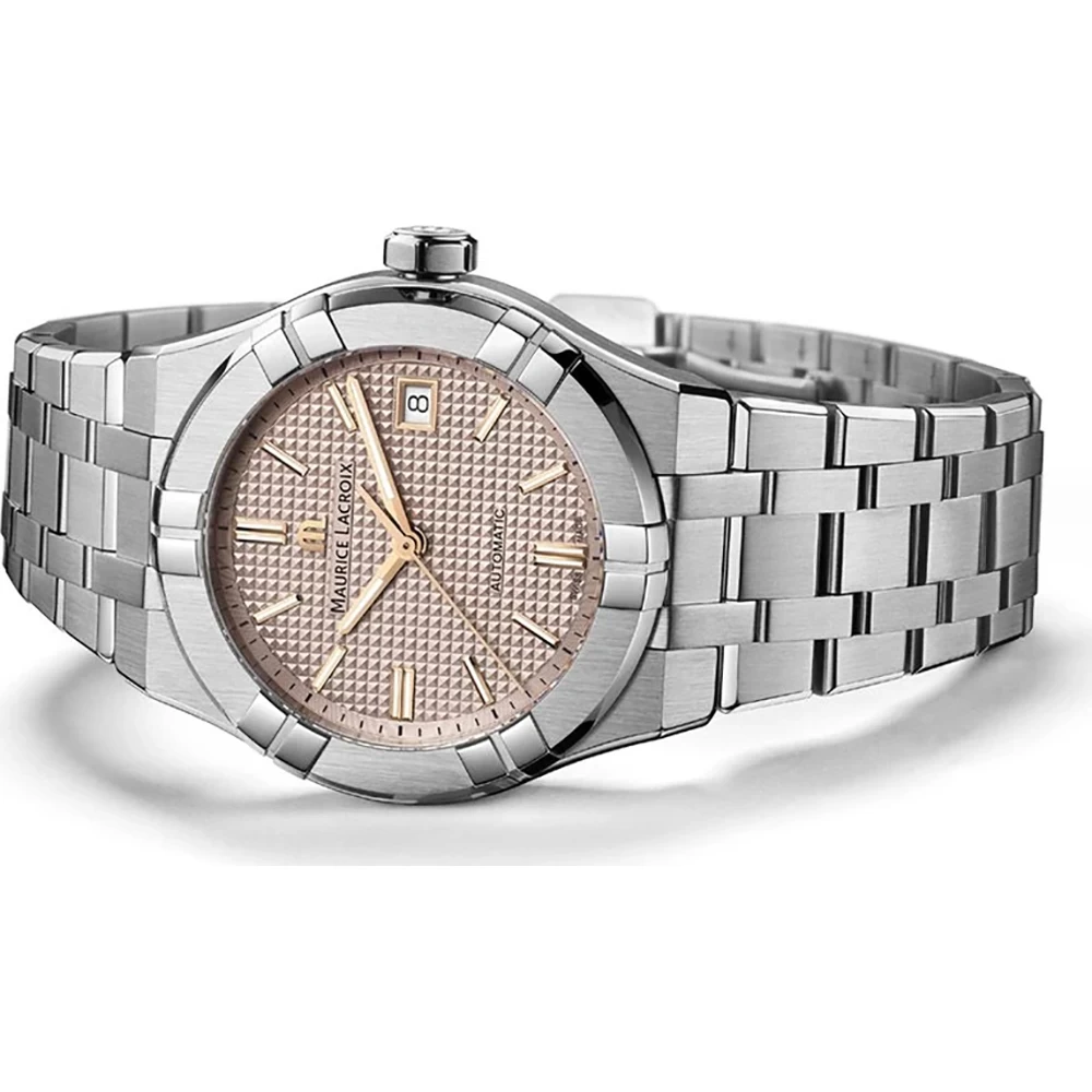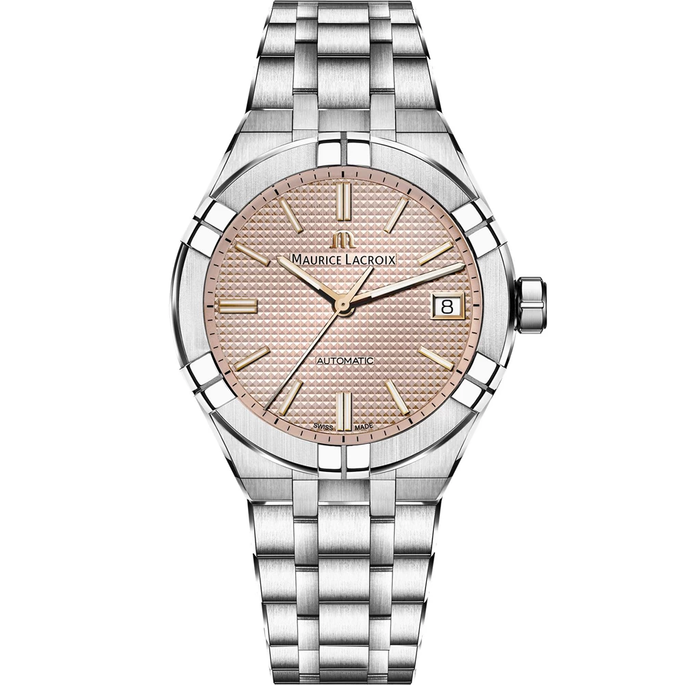 This Maurice Lacroix watch has a case made of stainless steel with a diameter of 39 mm and is fitted with a metal band. Inside the case lies a Sellita movement and the watch features a Sapphire crystal.