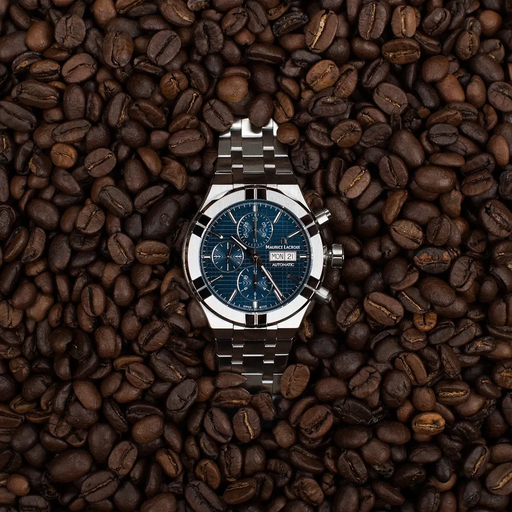 This Maurice Lacroix watch has a stainless steel case 44 mm in diameter and is fitted with a metal strap. Inside the case lies a Sellita movement and the watch features a Sapphire crystal.