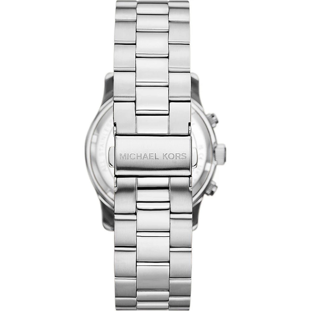 This Michael Kors watch has a case made of stainless steel with a diameter of 38 mm and is fitted with a stainless steel band. Inside the case lies a Seiko Instruments Inc. movement and the watch features a Mineral crystal.