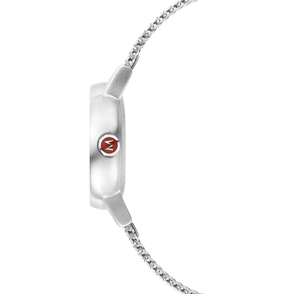 This Mondaine watch has a case made of stainless steel with a diameter of 26 mm and is fitted with a metal band. Inside the case lies a Ronda movement and the watch features a Sapphire crystal.