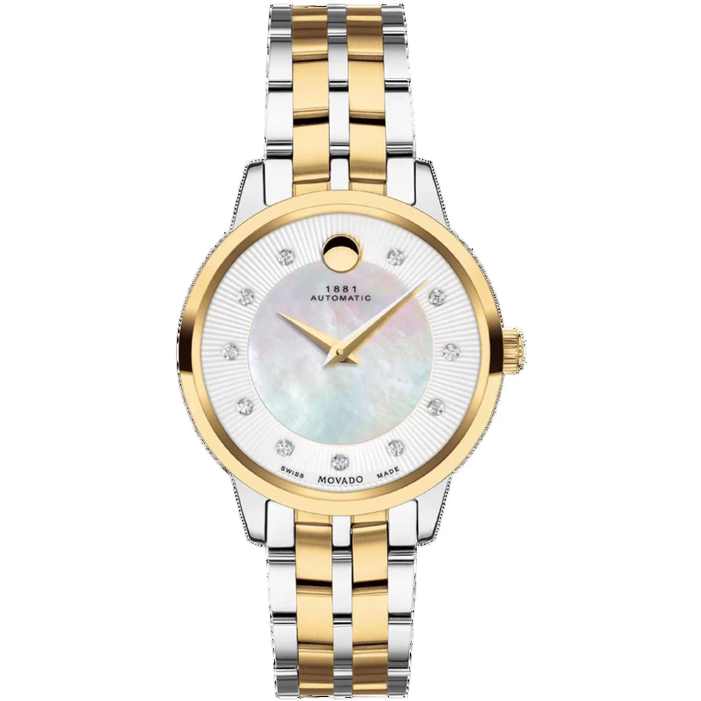 This Movado watch has a case made of stainless steel with a diameter of 30 mm and is fitted with a metal band. Inside the case lies a Sellita movement and the watch features a Sapphire crystal.