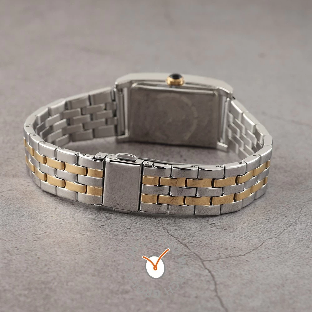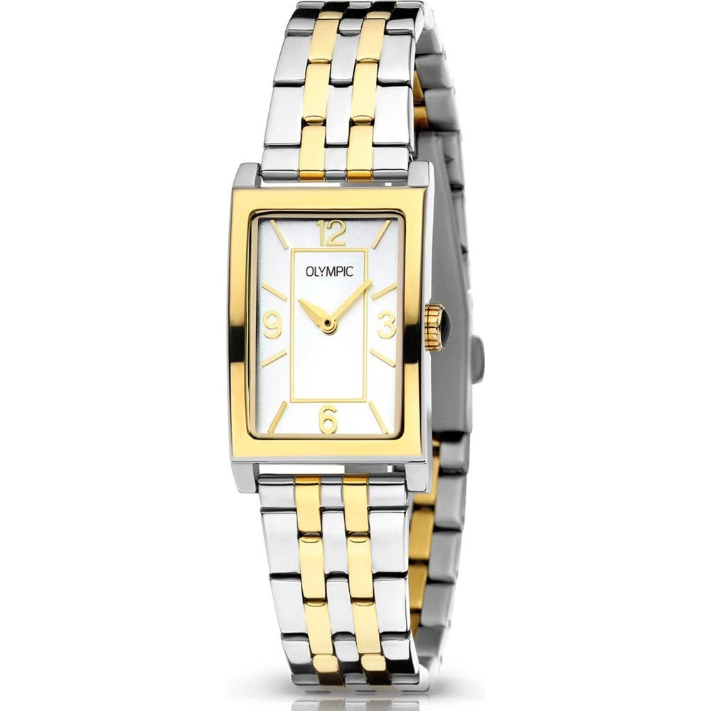 This Olympic watch has a case made of stainless steel with a diameter of 21 mm and is fitted with a metal band. Inside the case lies a Miyota movement and the watch features a Mineral crystal.