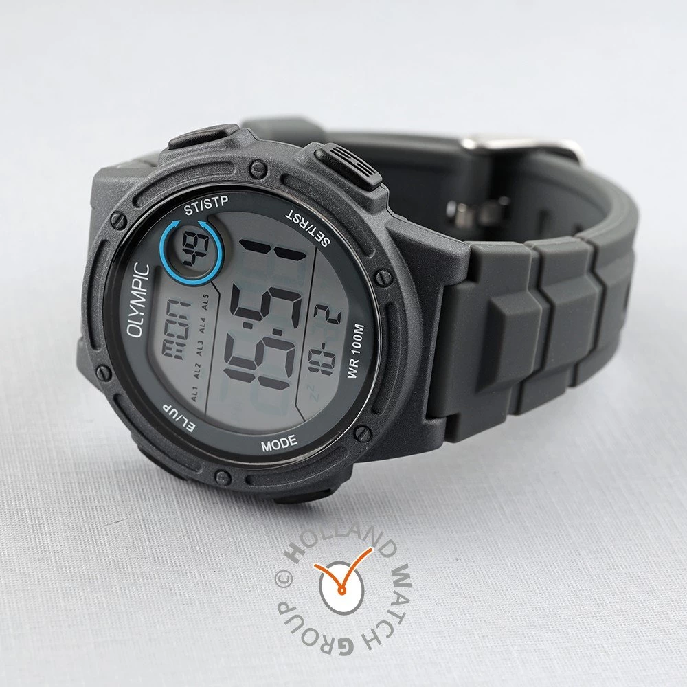 This Olympic watch has a case made of Resin with a diameter of 40 mm and is fitted with a rubber band. Inside the case lies a Miyota movement and the watch features a Mineral crystal.