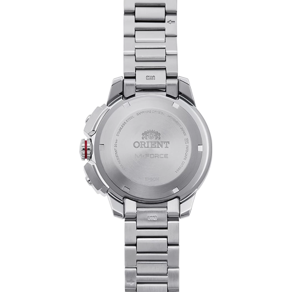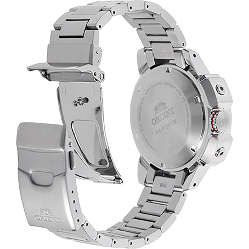 This Orient watch has a case made of stainless steel with a diameter of 45 mm and is fitted with a metal band. Inside the case lies a Orient movement and the watch features a Single anti-reflective sapphire crystal.