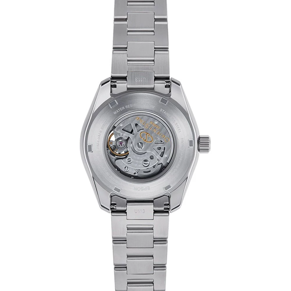 This Orient watch has a case made of stainless steel with a diameter of 41 mm and is fitted with a metal band. Inside the case lies a Seiko Instruments Inc. movement and the watch features a Sapphire crystal.