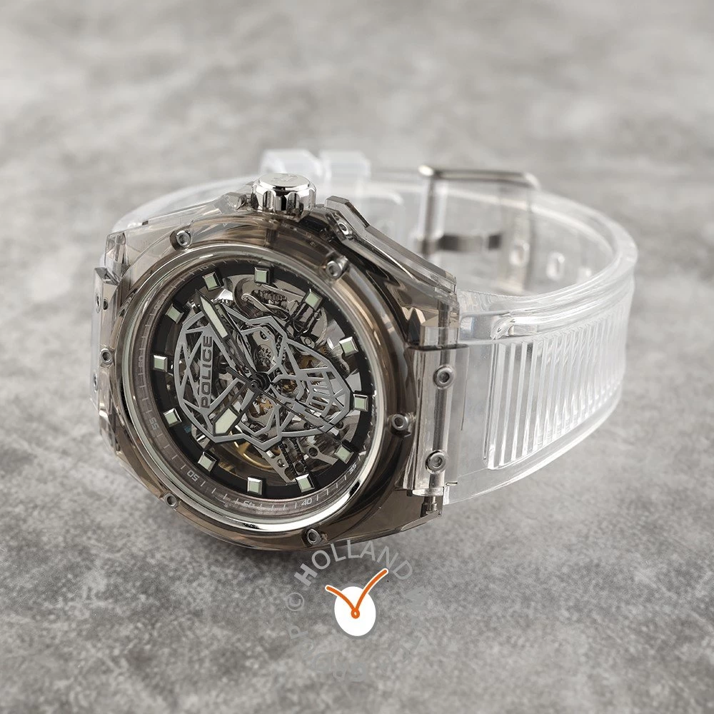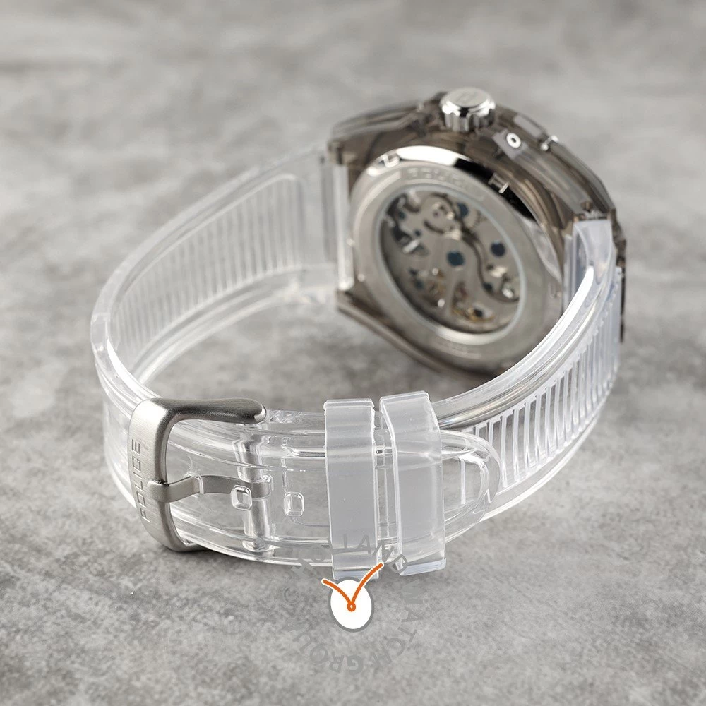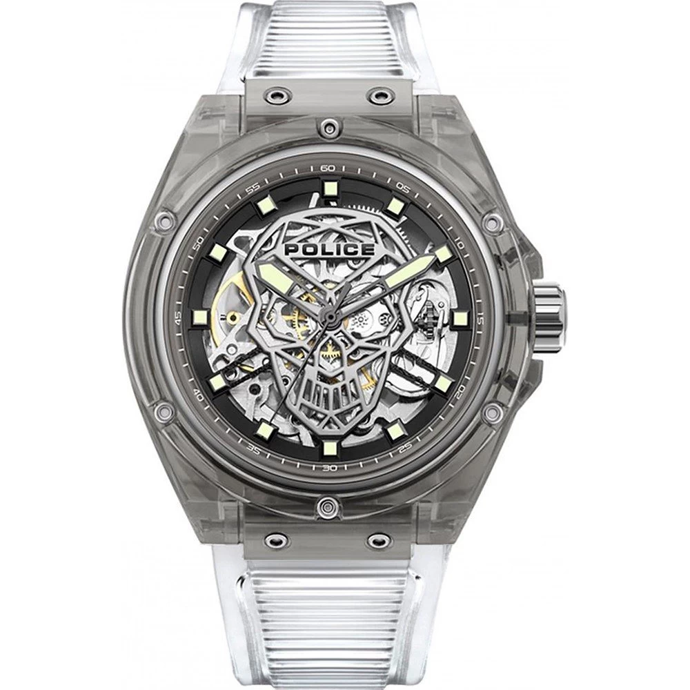 This Police watch has a case made of plastic with a diameter of 44 mm and is fitted with a plastic / resin band. Inside the case lies a PTS movement and the watch features a Mineral crystal.