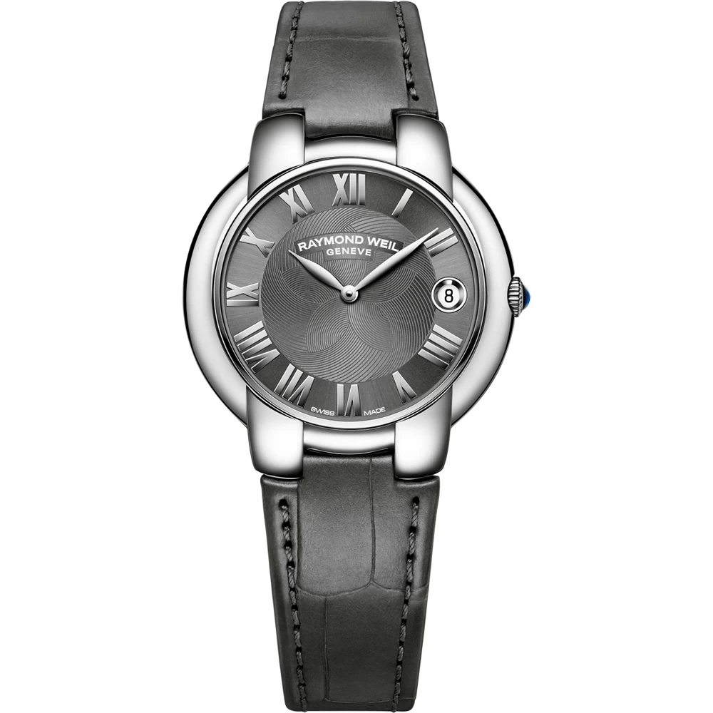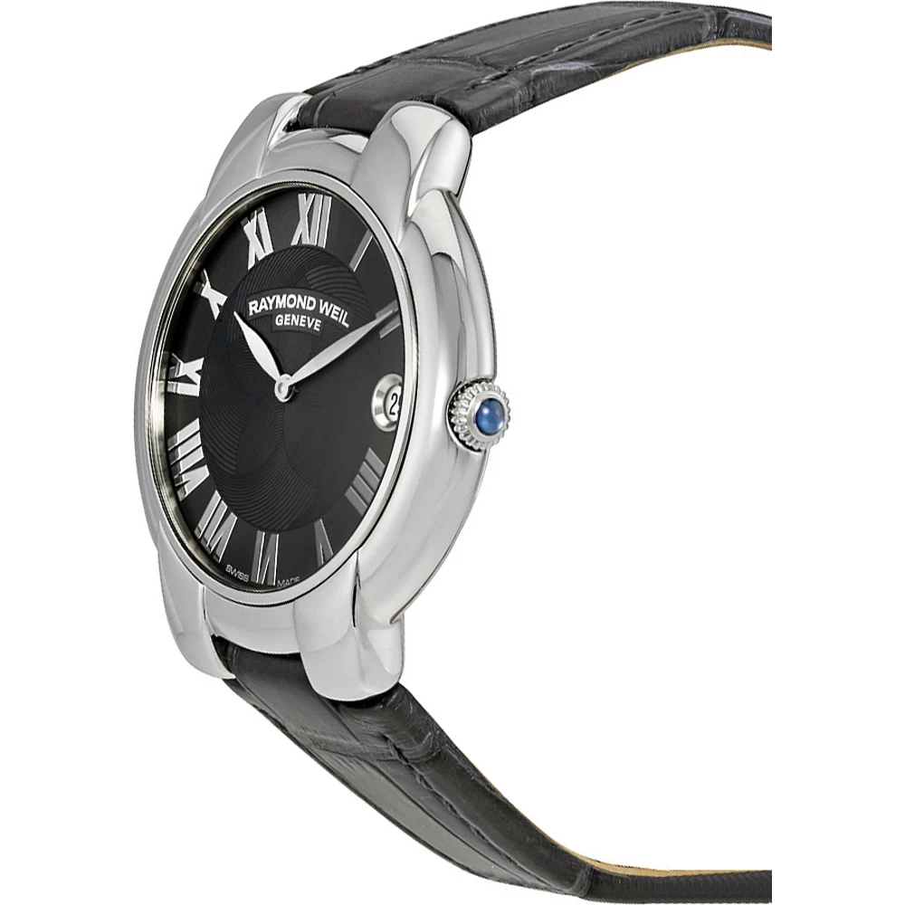 This Raymond Weil watch has a case made of stainless steel with a diameter of 35 mm and is fitted with a leather band. Inside the case lies a ETA movement and the watch features a Sapphire crystal.
