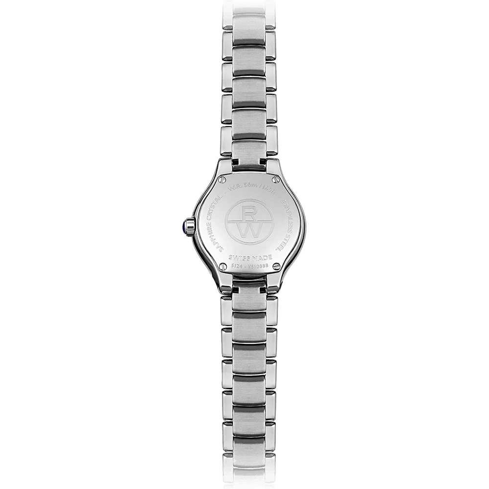 This Raymond Weil watch has a case made of stainless steel with a diameter of 24 mm and is fitted with a metal band. Inside the case lies a Ronda movement and the watch features a Sapphire crystal.