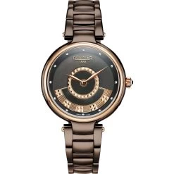 This Roamer watch has a case made of stainless steel with a diameter of 36 mm and is fitted with a metal band. Inside the case lies a Ronda movement and the watch features a Sapphire crystal.