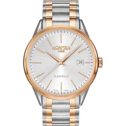 This Roamer watch has a case made of stainless steel with a diameter of 40 mm and is fitted with a metal band. Inside the case lies a Ronda movement and the watch features a Sapphire crystal.