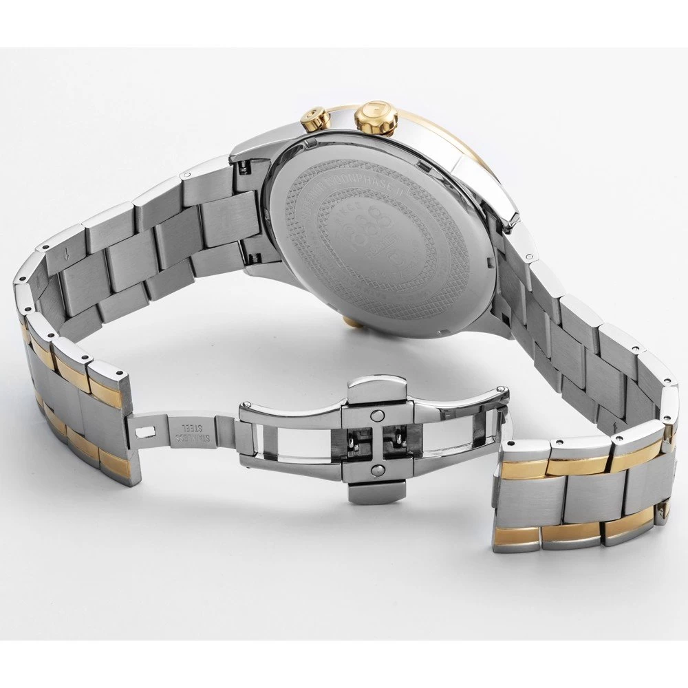 This Roamer watch has a case made of stainless steel with a diameter of 43 mm and is fitted with a metal band. Inside the case lies a Ronda movement and the watch features a Sapphire crystal.
