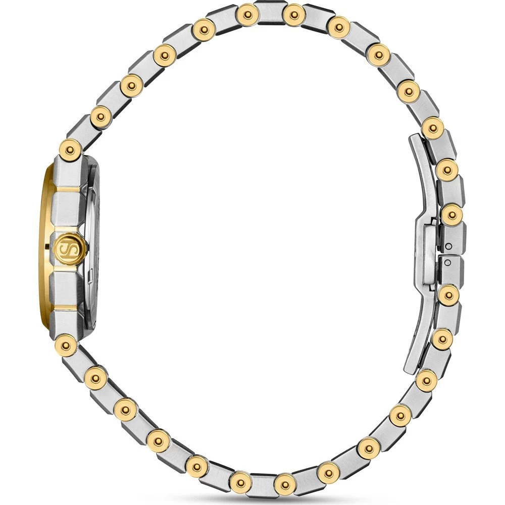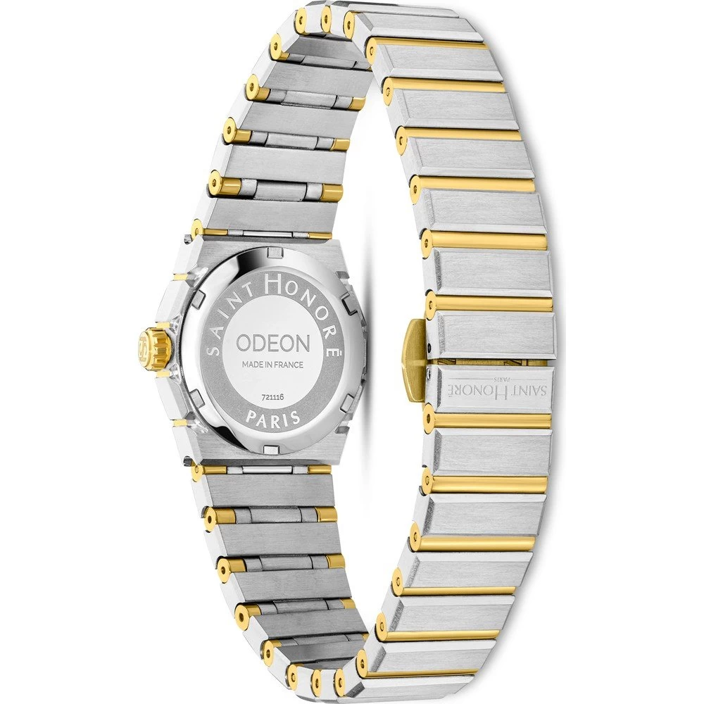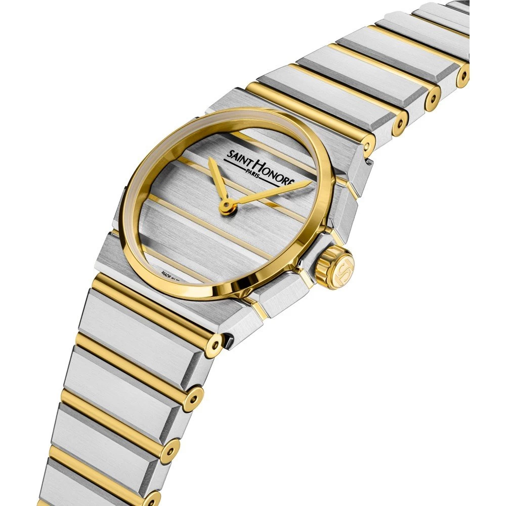 This Saint Honoré watch has a case made of stainless steel with a diameter of 26 mm and is fitted with a metal band. Inside the case lies a Ronda movement and the watch features a Sapphire crystal.