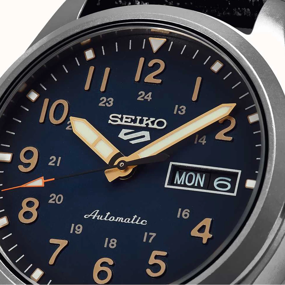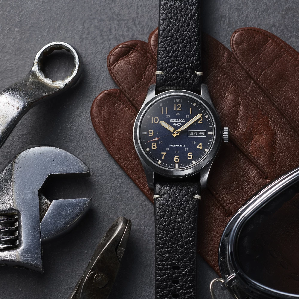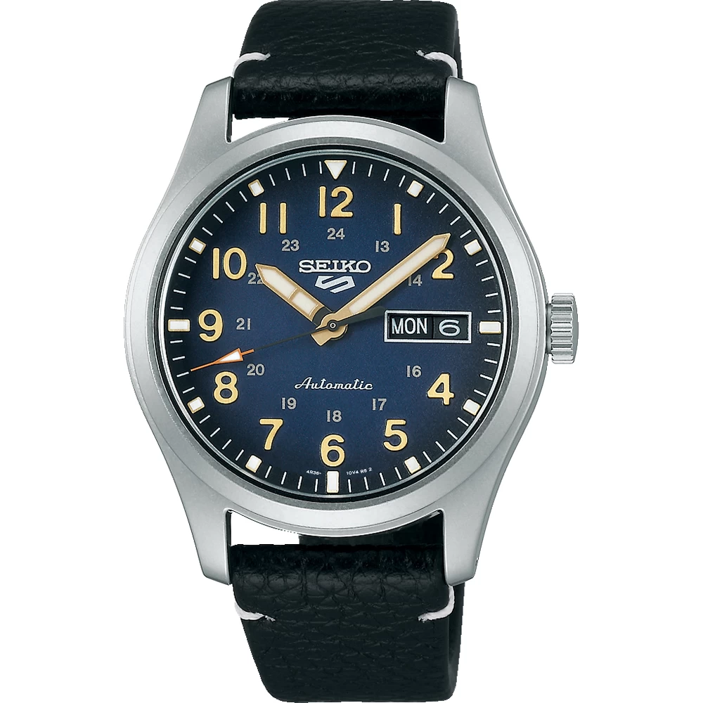 This Seiko watch has a case made of stainless steel with a diameter of 39.4 mm and is fitted with a leather band. Inside the case lies a Seiko movement and the watch features a Mineral crystal.