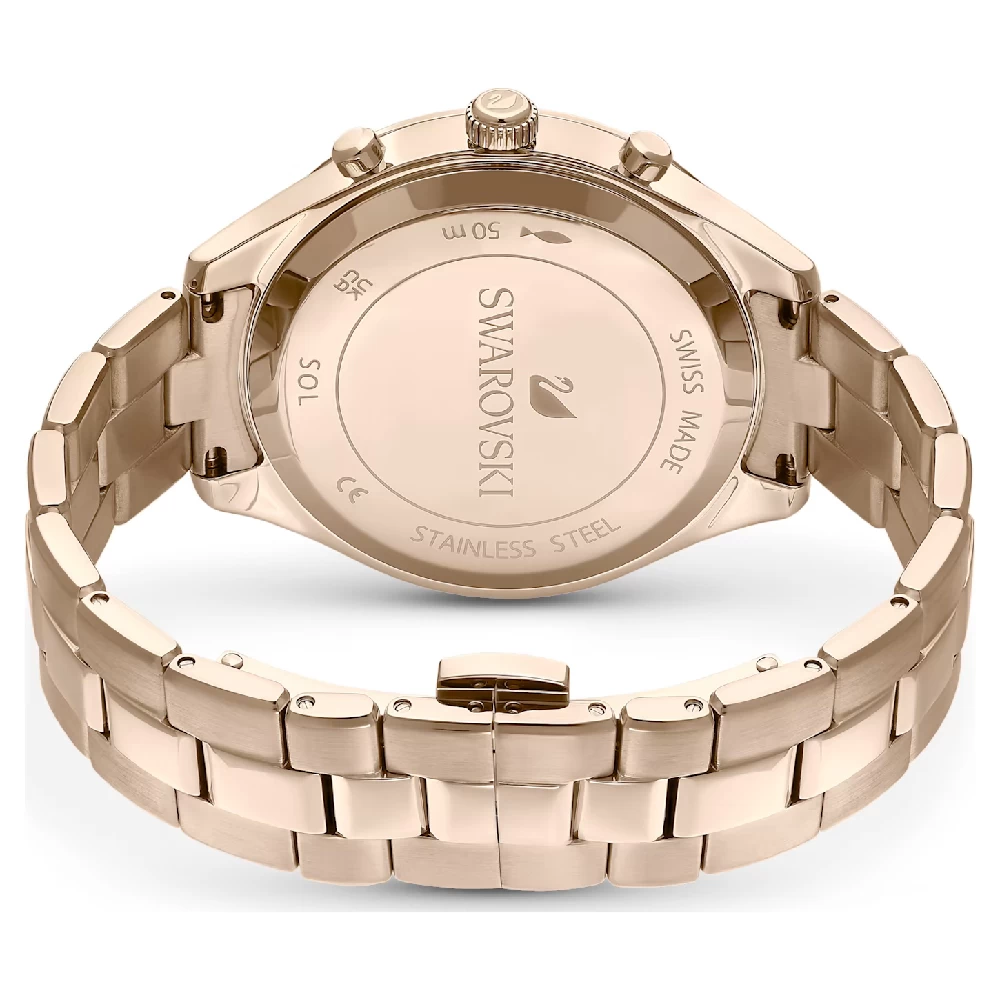 This Swarovski watch has a case made of stainless steel with a diameter of 37 mm and is fitted with a metal band. Inside the case lies a Ronda movement and the watch features a Mineral crystal.