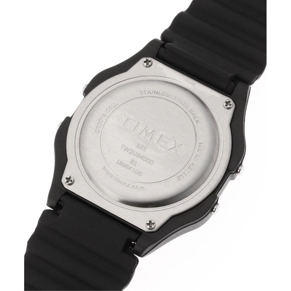 This Timex watch has a case made of Resin with a diameter of 34 mm and is fitted with a Resin band. Inside the case lies a Timex movement and the watch features a Mineral crystal.