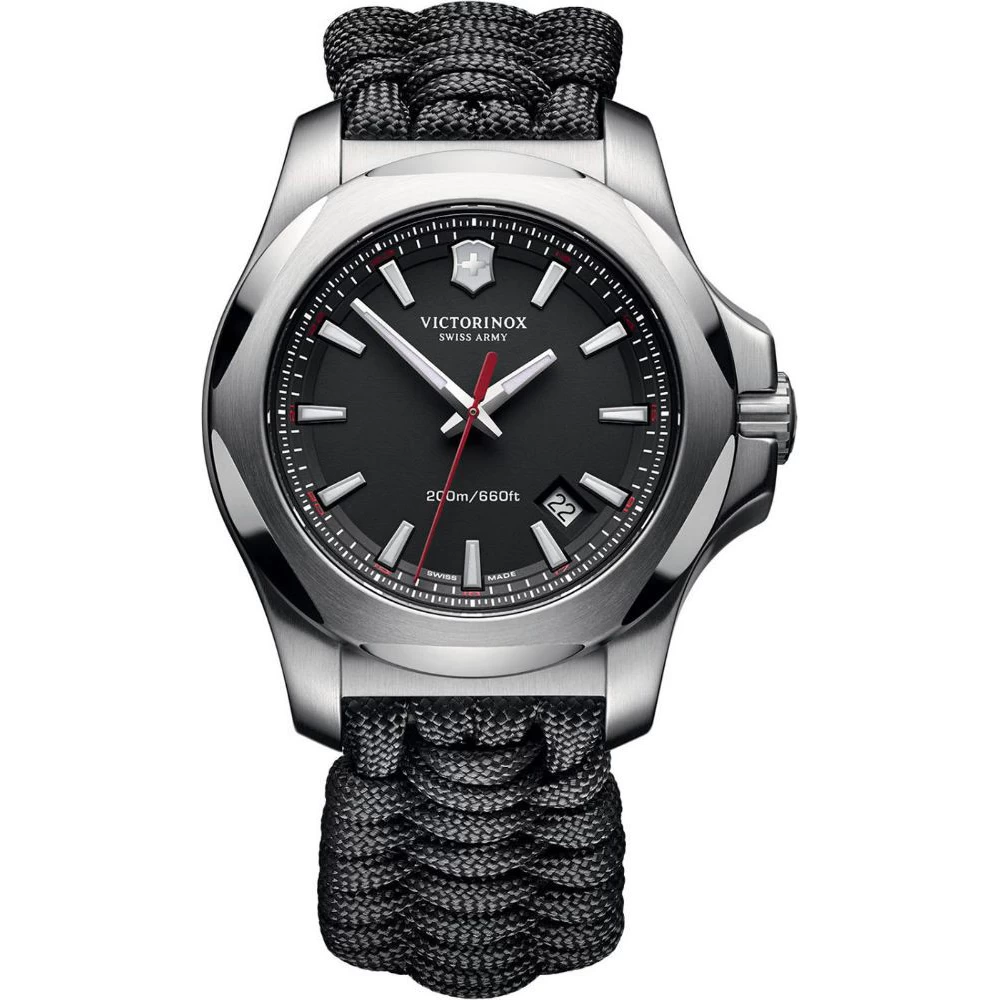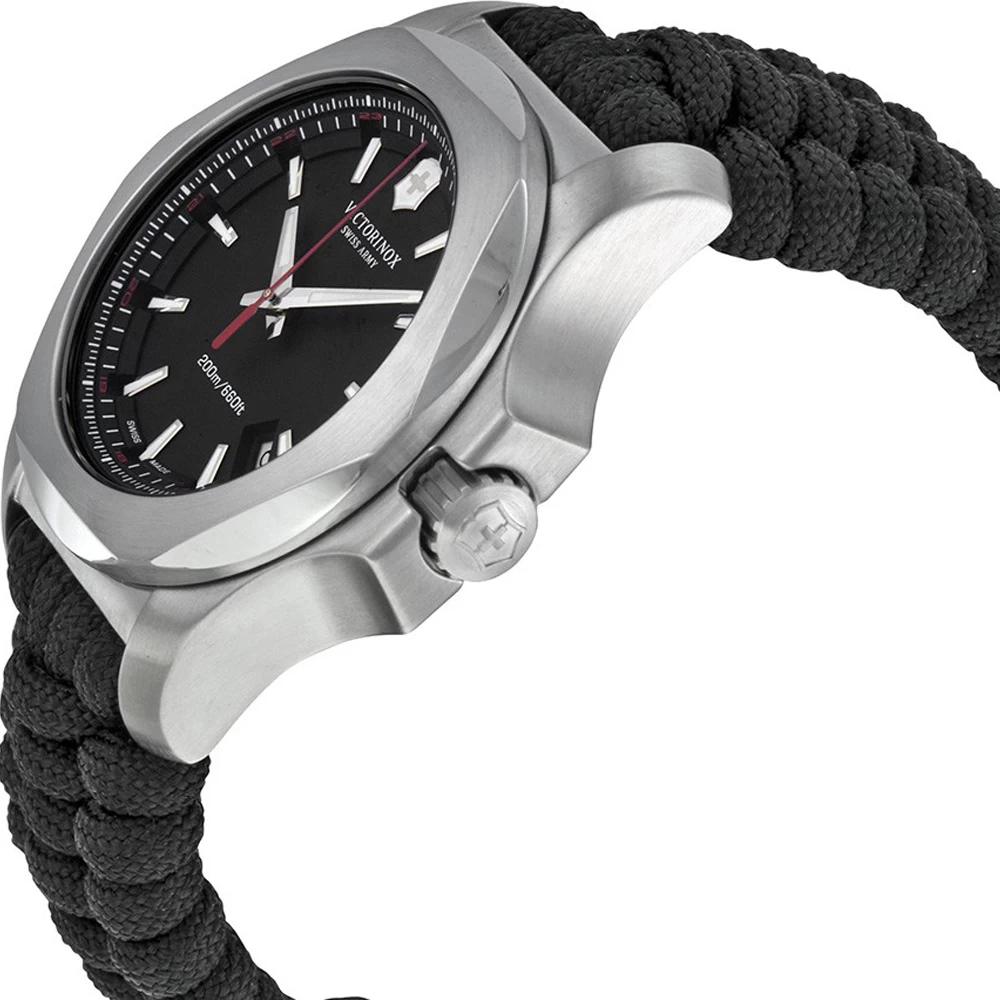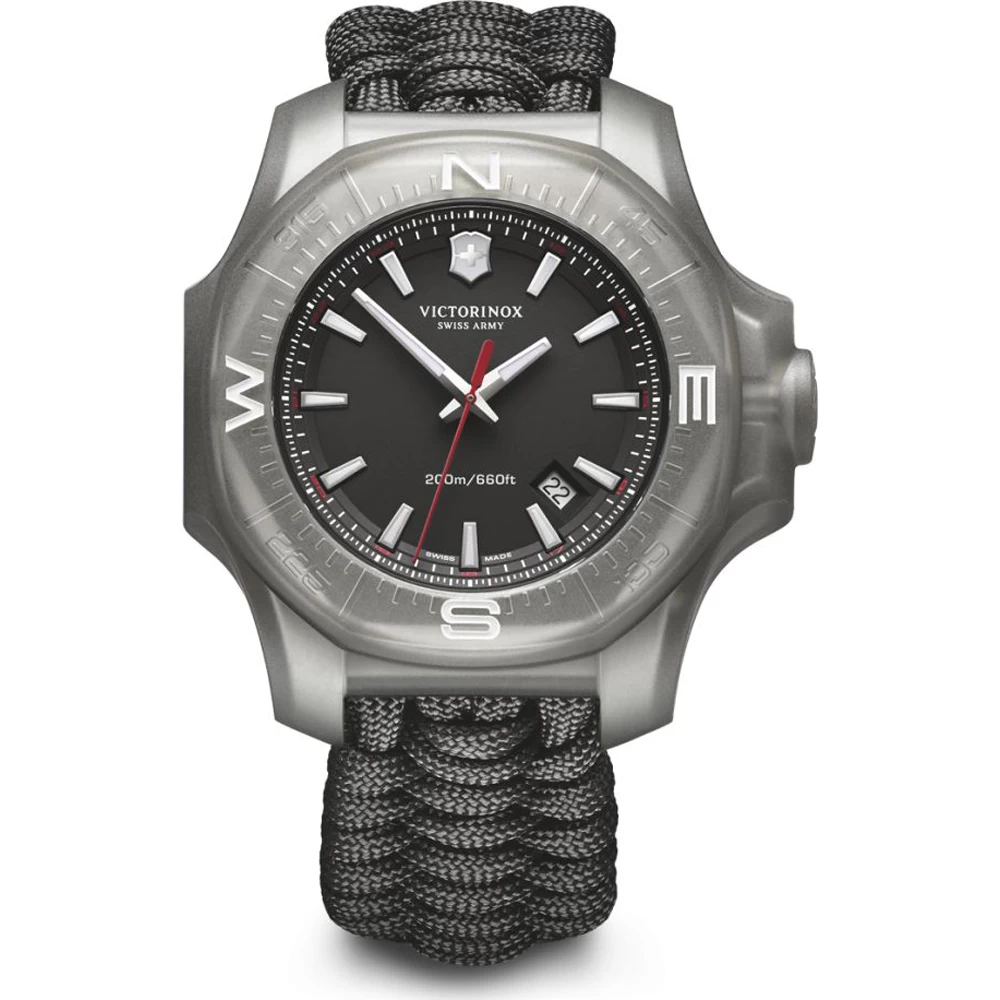 This Victorinox Swiss Army watch has a stainless steel case 43 mm in diameter and is fitted with a textile strap. Inside the case lies a Ronda movement and the watch features a Sapphire crystal.