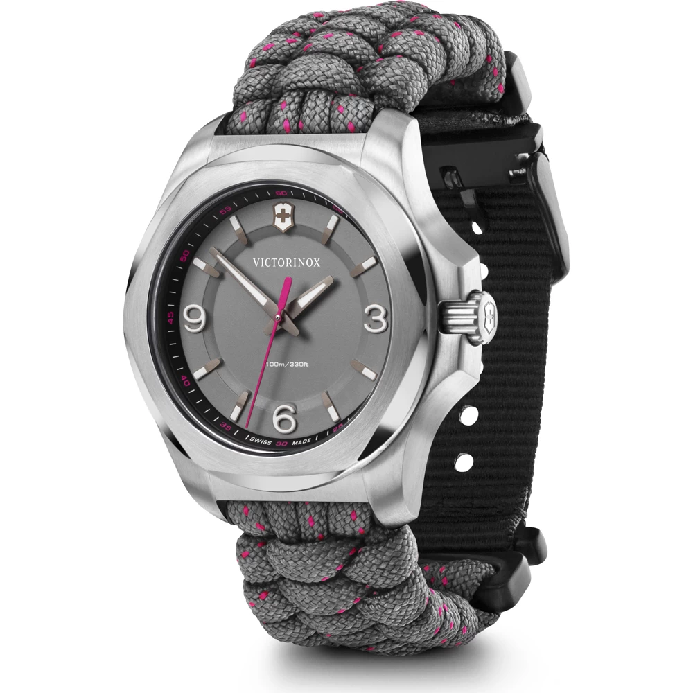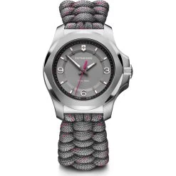 This Victorinox Swiss Army watch has a case made of stainless steel with a diameter of 37 mm and is fitted with a textile band. Inside the case lies a Ronda movement and the watch features a Sapphire crystal.